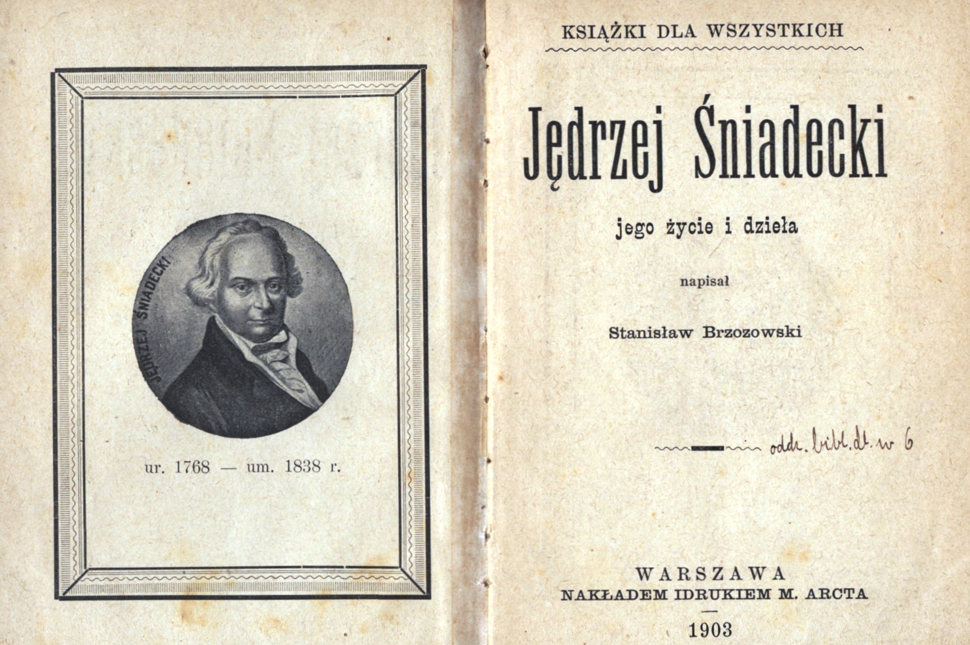 Portrety: przez Aleksandra Sleńdzińskiego z r. 1843 i przez Józefa Oziębłowskiego, ok. poł. XIX w. w Lietuvos dailės muziejus w Wil., przez Jana Rustema (kilka wersji), półpostać, ok. 1815, na Zamku Królewskim w W., przez Karola Rypińskiego wg J. Rustema jako ryc., w: „Album Wileńskie”, Oprac. J. K. Wilczyński, Wil. 1848; Gipsowe popiersie przez Kazimierza Jelskiego w sali posiedzeń Tow. Lek. Wil.; Grajewski, Bibliogr. ilustracji; — Estreicher; Estreicher w. XIX; Katalog portretów osobistości polskich i obcych w Polsce działających, W. 1994 IV; Lietuvos ateizmo istorijos chestomatija. Religijos kritika, laisvamanybė ir ateizmas Lietuvoje, Vilnius 1988; Nowy Korbut; PSB (Andrzejowski Antoni, Baranowski Ignacy, Bartsch Jan Kanty, Borkowski Stanisław, Borsuk Benedykt, Bukaty Franciszek, Chodkiewicz Aleksander, Chodźko Jan Borejko, Czech Józef, Domeyko Ignacy, Dorszewski Kazimierz, Glücksberg August, Górski Walerian, Grochowski Mieczysław, Günther von Heidesheim Adam, Homolicki Michał, Karczewski Jozef, Konopnicka Maria, Kontrym Kazimierz, Kortum Karol, Kosmulski Leon, Kramsztyk Zygmunt, Krumłowski Józef, Kucharzewski Ludwik, Kułakowski Henryk, Mianowski Józef, Mianowski Mikołaj, Mickiewicz Józef, Niszkowski Jan, Oczapowski Michał, Oziębłowski Józef, Piekarski Witold, Pieńkiewicz Adam, Plater Ludwik, Pleśniewicz Stanisław, Potocki Stanislaw Kostka, Przybylski Maciej, Przystański Aleksander, Puttkamer Wawrzyniec, Puzynina Gabriela, Radziszewski Bronisław, Rafałowicz Ruben, Rejchman Bronisław, Renier Anicety, Rustem Jan, Rymkiewicz Feliks, Rypiński Karol, Sartorius Józef, Skarżyński Bolesław, Skimborowicz Hipolit, Skrodzki Józef, Sławecki Wincenty, Sławiński Kazimierz, Słowacki Juliusz, Spitznagel Ferdynand, Strojnowski Jerzy, Stroynowski Hieronim, Stroynowski Walerian, Stubielewicz Stefan, Szahin Franciszek, Szokalski Wiktor, Szostakowski Tadeusz, Szymanowska Maria, Szymkiewicz Jakub); Russ. biogr. slovar’; Słown. biologów; — Aftanazy, Dzieje rezydencji, IV 47—50, 156; Album Wileńskie, Oprac. J. K. Wilczyński, Wil. 1848; Baliński M., Pamiętniki o Janie Śniadeckim, jego życiu prywatnym i publicznym, i dziełach jego, Wil. 1865 I—II; tenże, Życie Jędrzeja Śniadeckiego, Leszno—Gniezno 1840; Bartnicka K., Działalność edukacyjna Jana Śniadeckiego, Wr. 1980; Beauvois D., Szkolnictwo polskie na ziemiach litewsko-ruskich 1803—1832, L. 1991 I—II; Bednarczyk A., Jędrzeja Śniadeckiego Teoria jestestw organicznych (1804), W. 2004; Bieliński, Stan nauk lek.; Bieliński, Uniw. Wil., I—III; Bieliński J., Szubrawcy w Wilnie (1817—1822). Zarys historyczny, Wil. 1910 s. 80—91; Biniewicz A., Rozwój polskiej terminologii chemii nieorganicznej, Opole 1992 s. 23—30; Bilski R., Jędrzej Śniadecki (1768—1838) pionierem współczesnej reanimizacji, „Pol. Tyg. Lek.” 1964 nr 43; Brzozowski S., Jędrzej Śniadecki, jego życie i dzieła, W. 1903; Chmielowski P., Towarzystwo Szubrawców i Jędrzej Śniadecki. Zarys obyczajowo-literacki, „Tyg. Ilustr.” 1878 nr 107—114; Czapska M., Ludwika Śniadecka, W. 1958; Głowacki W. W., Wykłady farmacji Jędrzeja Śniadeckiego w Wilnie (1797—1804), W. 1991; Gomółka B., Poglądy Jędrzeja Śniadeckiego na naturę procesu fotosyntezy, „Zesz. UJ”, Prace Botaniczne, z. 3 1975; Górnicki B., Jędrzej Śniadecki jako pediatra, Kr. 1950; tenże, Jędrzej Śniadecki — żywot i dzieła, „Warsz. Czas. Lek.” 1938 nr 45; Grochowski M., Czy zasłużony nasz fizjolog Jędrzej Śniadecki był transformistą, „Kosmos” T. 22: 1897; Grygorowicz M., Dorobek uczonych wszechnicy wileńskiej w dziedzinie chemii. Jędrzej Śniadecki i początki nauk chemicznych na Uniwersytecie Wileńskim, w: Wilno i Kresy Północno-Wschodnie, Białystok 1996 II; Harabaszewski J., Jędrzej Śniadecki. Nauczyciel chemii i pisarz rzeczy chemicznych, Lw. 1938; Hubicki W., Chemik, badacz i dydaktyk, w: Rzecz o Jędrzeju Śniadeckim, Red. I. Stasiewicz, W. 1970; tenże, Jędrzej Śniadecki as a Student of Chemistry, „Organon” T. 7: 1970 s. 231—45; Ilgiewicz H., Wileńskie towarzystwa i instytucje naukowe w XIX wieku, Tor. 2005; Januszkiewicz A., Jędrzej Śniadecki jako lekarz i kierownik Kliniki Medycznej Wileńskiej, „Now. Lek.” 1938 z. 10; Jaworska J., Album Wileńskie w zbiorach graficznych Muzeum Narodowego w Warszawie, „Roczn. Muz. Narod. w W.” T. 20: 1976 s. 272; Kamińska J., Universitas Vilnensis 1793—1803, W. 2012; Kapustinskij A. F., Andriej Sniadeckij i vilenskaja škola chimikov, „Trudy Instituta Istorii Jestiestvoznanija i Tiechniki” T. 12: 1956; Księski J., Śniadeccy w Żninie, „Problemy” 1963 nr 5; Lachs J., Projekty Tadeusza Czackiego i Jędrzeja Śniadeckiego, zmierzające do założenia szkoły lekarskiej na Wołyniu, „Przegl. Lek.” 1903 nr 27—30 (odpowiedź J. Bielińskiego, tamże 1903 nr 41, odpowiedź J. Lachsa, tamże 1903 nr 41); Libelt K., Dwaj bracia Śniadeccy, P. 1866; Marshall J. L., Marshall V. R., Reinvestigating vestium, one of the spurious platinum metals, „Bulletin for the History of Chemistry” Vol. 35: 2010 nr 1; Mężyński K., Gotfryd Ernest Groddeck Profesor Adama Mickiewicza. Próba rewizji, Wr. 1974; Modrzewski T., Czy zapomniany herb Jędrzeja i Jana Śniadeckich?, „Wiad. Lek.” T. 22: 1969 nr 14; Mościcki H., Pod znakiem Orła i Pogoni, W. 1915; Mrozowska K., U progu nowej ery. Dyskusja nad statutem wewnętrznym Uniwersytetu Wileńskiego w latach 1806—1808, w: Studia z dziejów oświaty i kultury umysłowej w Polsce XVIII—XX w., Wr. 1977; Okoń W., Jędrzej Śniadecki i jego dzieło o wychowaniu fizycznym, w: Materiały do studiów pedagogicznych, W. 1958 IV; Pigoń S., Historia jednego konkursu do katedry wymowy i poezji w dawnym Uniwersytecie Wileńskim, Wil. 1929; Pleśniewicz S., Sarnecki K., Dotychczasowe poglądy na sprawę westu, „Przem. Chem.” 1938 nr 4; Płonka-Syroka B., Recepcja doktryn medyc