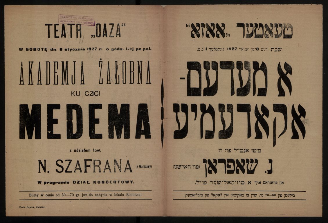 Afisz akademii ku czci Włodzimierza Medema, [online] Warszawa: Narodowy Instytut Audiowizualny [dostęp 01.04.2026]. Dostępny w internecie: http://www.ipsb.nina.gov.pl/a/foto/afisz-akademii-ku-czci-wlodzimierza-medema-2