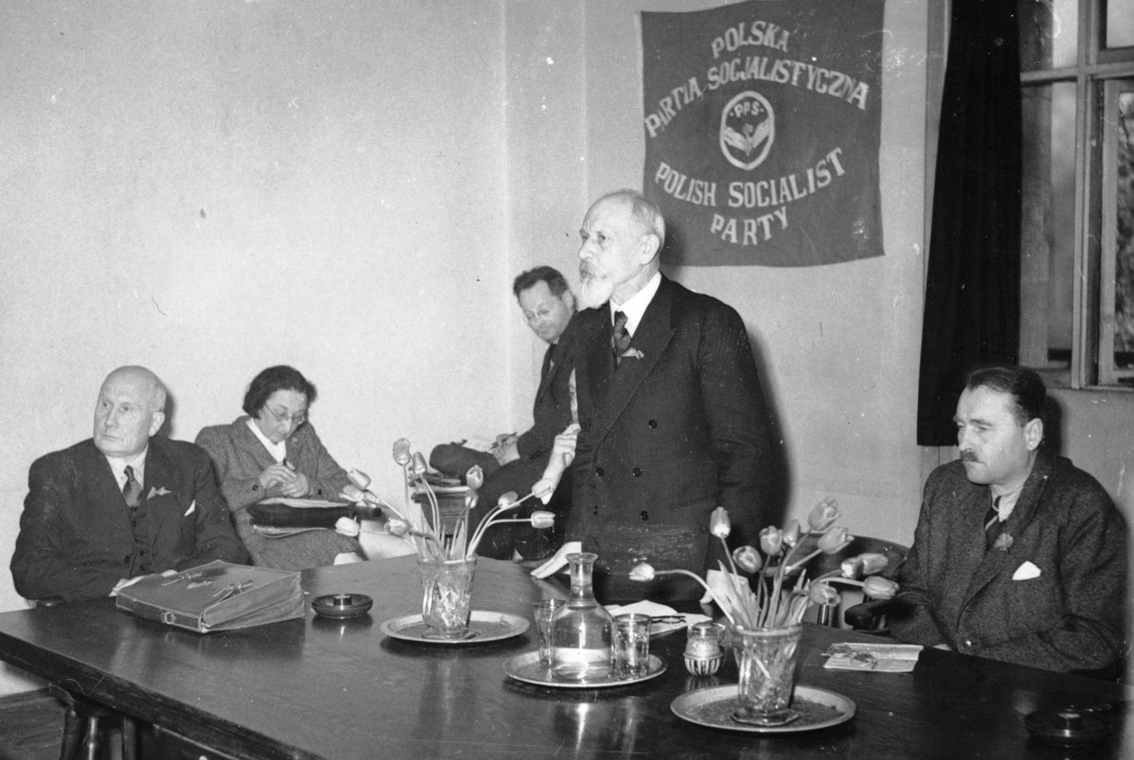 Akademia z okazji 1 Maja zorganizowana przez Polską Partię Socjalistyczną, Londyn 1.05.1945 r., [online] Warszawa: Narodowy Instytut Audiowizualny [dostęp 13.04.2026]. Dostępny w internecie: http://www.ipsb.nina.gov.pl/a/foto/akademia-z-okazji-1-maja-zorganizowana-przez-polska-partie-socjalistyczna-londyn-1051945-r