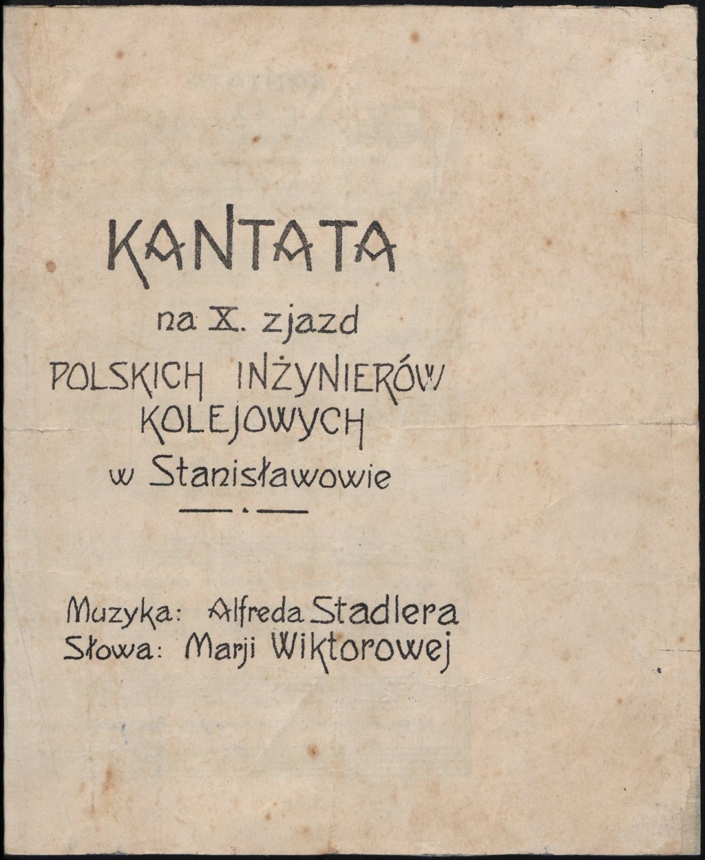 Alfred Stadler "Kantata na X. Zjazd Polskich Inżynierów Kolejowych w Stanisławowie" (strona tytułowa), [online] Warszawa: Narodowy Instytut Audiowizualny [dostęp 14.03.2026]. Dostępny w internecie: http://www.ipsb.nina.gov.pl/a/foto/alfred-stadler-kantata-na-x-zjazd-polskich-inzynierow-kolejowych-w-stanislawowie-strona-tytulowa