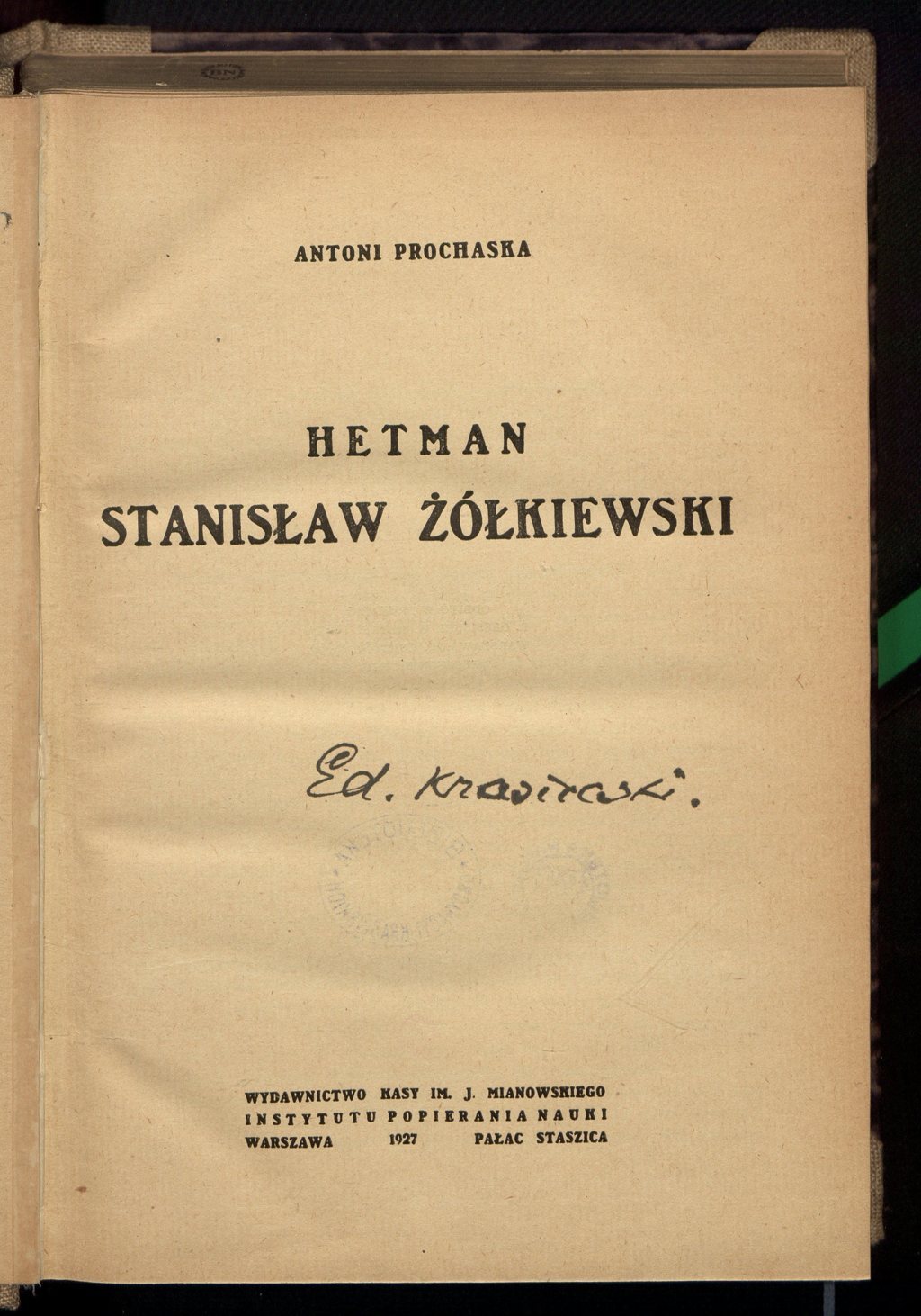 Antoni Prochaska "Hetman Stanisław Żółkiewski" (strona tytułowa), [online] Warszawa: Narodowy Instytut Audiowizualny [dostęp 13.04.2026]. Dostępny w internecie: http://www.ipsb.nina.gov.pl/a/foto/antoni-prochaska-hetman-stanislaw-zolkiewski-strona-tytulowa