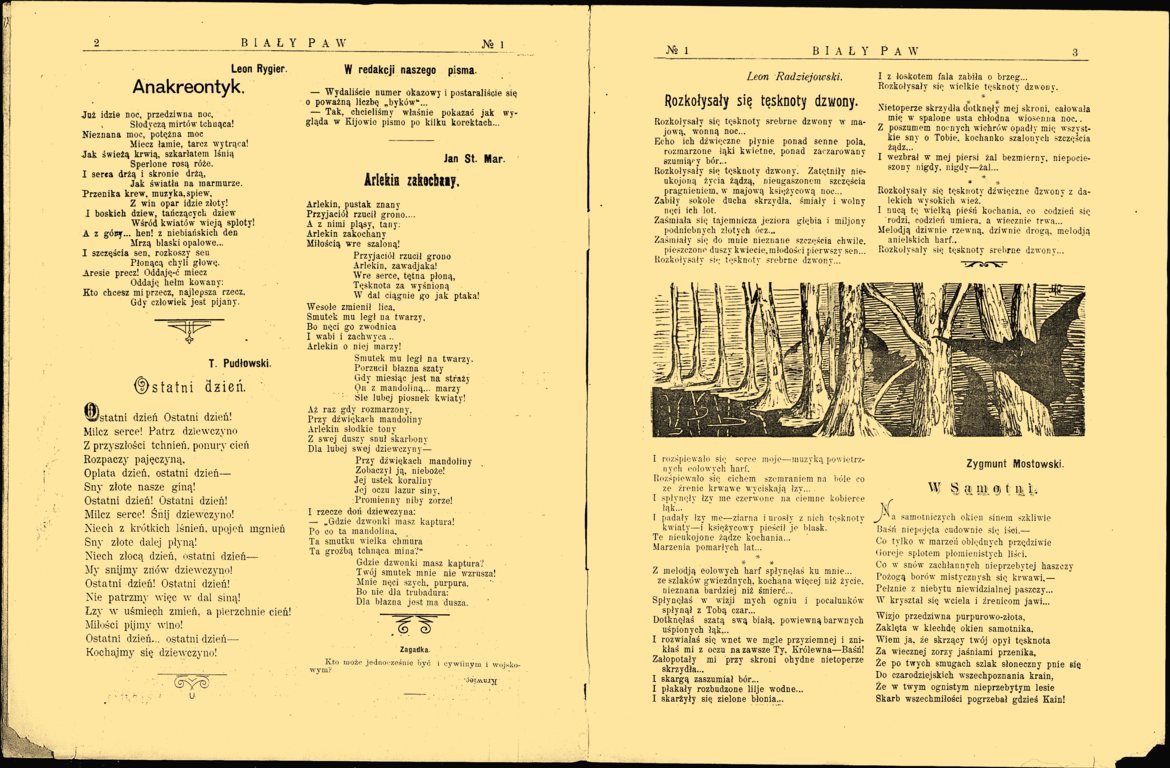 "Biały Paw: tygodnik satyryczno-literacki i humorystyczny" (red. Leon Radziejowski), [online] Warszawa: Narodowy Instytut Audiowizualny [dostęp 14.04.2026]. Dostępny w internecie: http://www.ipsb.nina.gov.pl/a/foto/bialy-paw-tygodnik-satyryczno-literacki-i-humorystyczny-red-leon-radziejowski-2