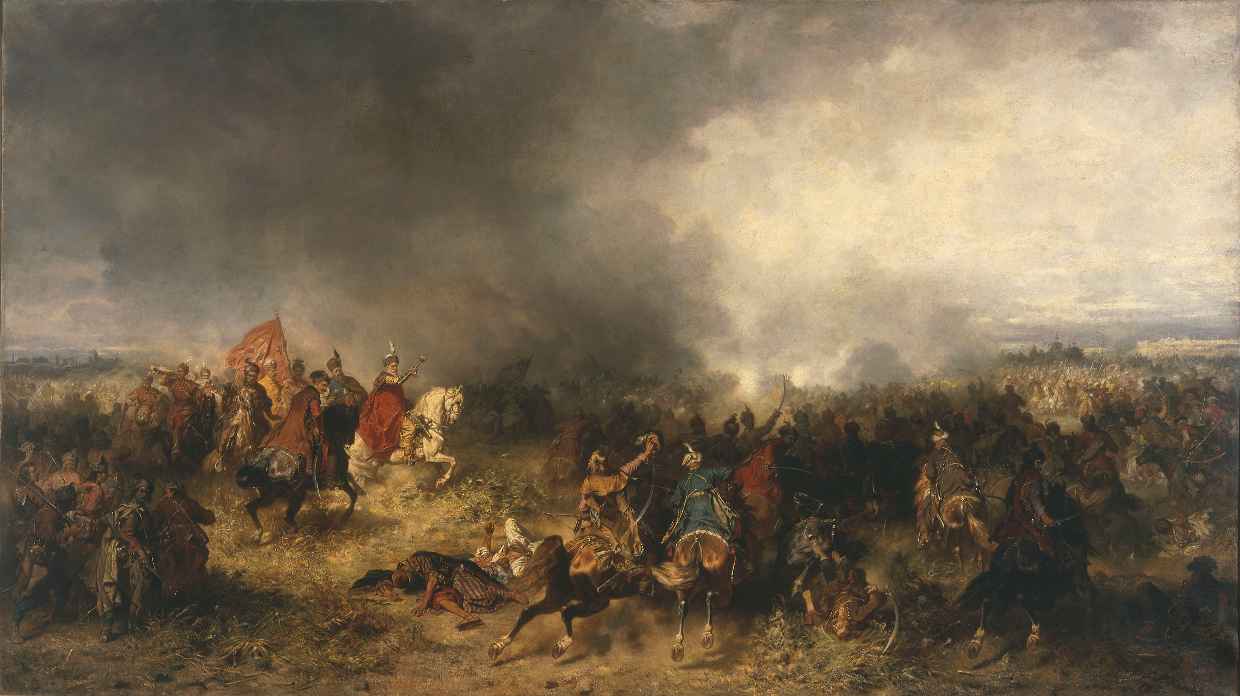 Obraz olejny z 1867 roku. Przedstawia scenę ze starcia z Turkami we wrześniu 1621 roku. Walką dowodził hetman wielki litewski Jan Karol Chodkiewicz  ( na obrazie z uniesioną buławą daje znak do ataku). Wspomagały go wojska kozackie pod wodzą hetmana Piotra Komaszewicza Sahajdacznego.