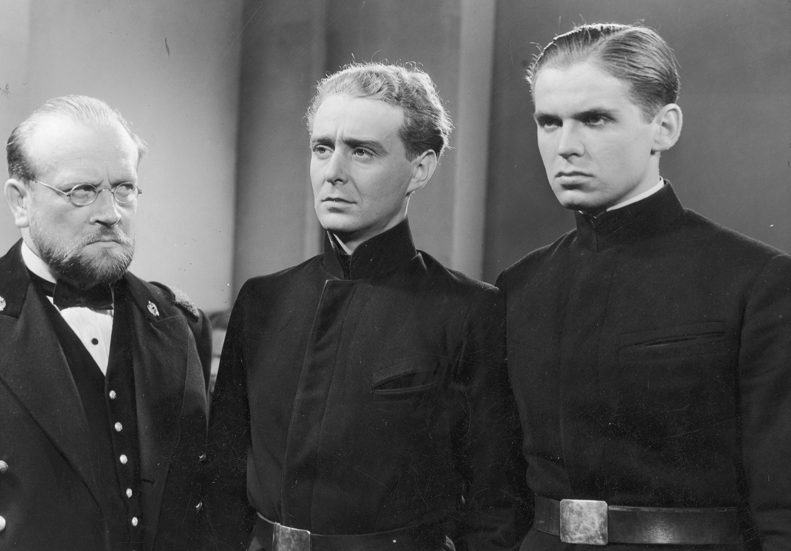 , Bogusław Samborski jako dyrektor Starogrenadzki (z lewej), Mieczysław Cybulski jako Jan Walczak (w środku) i Witold Zacharewicz jako Majewski w jednej ze scen filmu „Młody las”., [w:] Polski słownik biograficzny, t. ,