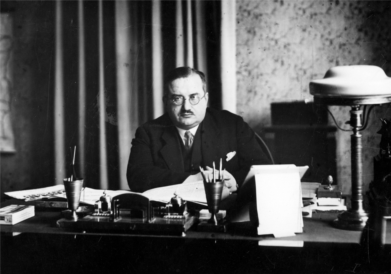 Bronisław Nakoniecznikow-Klukowski, wiceminister spraw wewnętrznych, w gabinecie pracy., [online] Warszawa: Narodowy Instytut Audiowizualny [dostęp 13.04.2026]. Dostępny w internecie: http://www.ipsb.nina.gov.pl/a/foto/bronislaw-nakoniecznikow-klukowski-wiceminister-spraw-wewnetrznych-w-gabinecie-pracy