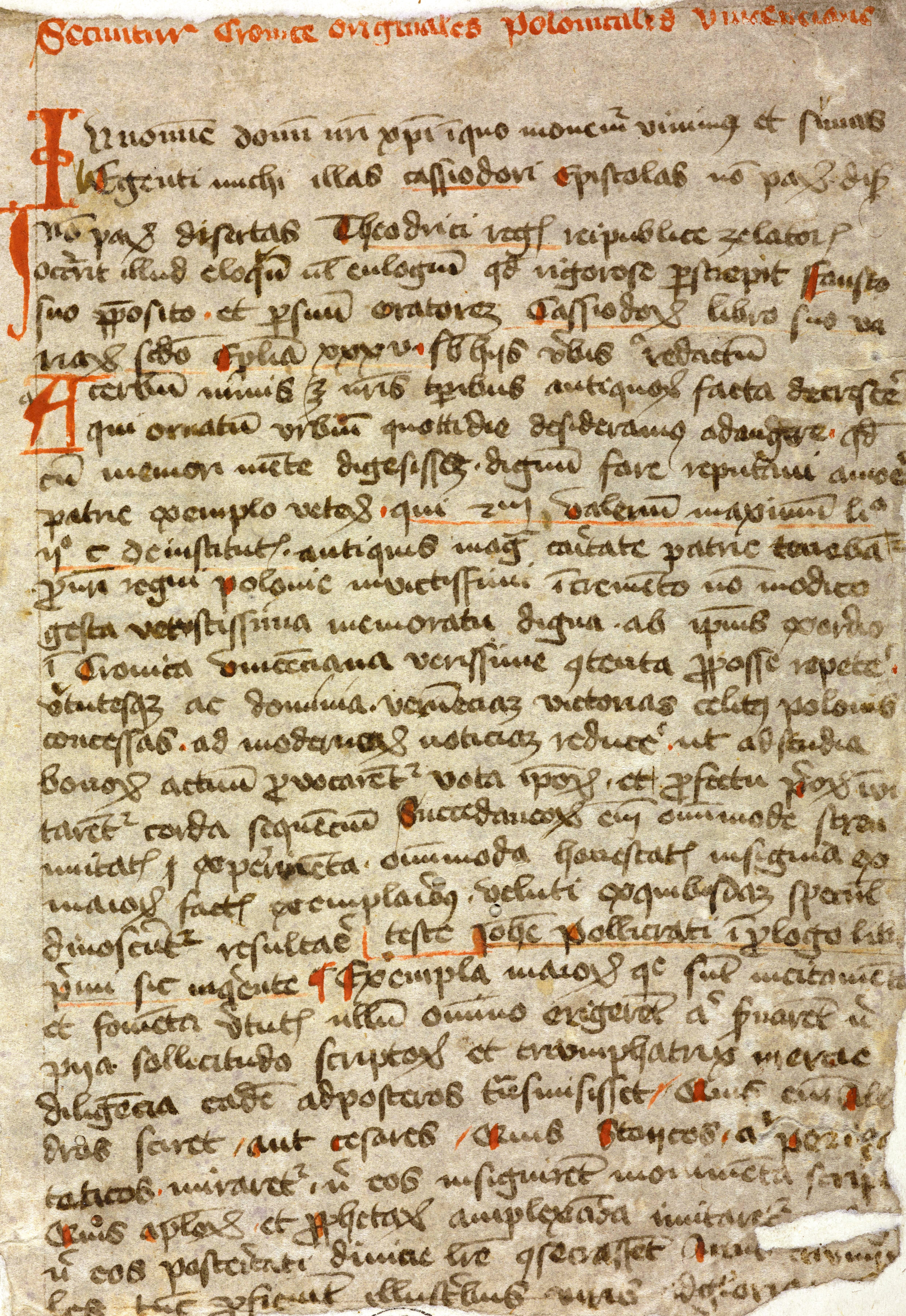 "Chronica cum commentario Johannis de Dąbrówka" Wincentego Kadłubka., [online] Warszawa: Narodowy Instytut Audiowizualny [dostęp 13.04.2026]. Dostępny w internecie: http://www.ipsb.nina.gov.pl/a/foto/chronica-cum-commentario-johannis-de-dabrowka-wincentego-kadlubka
