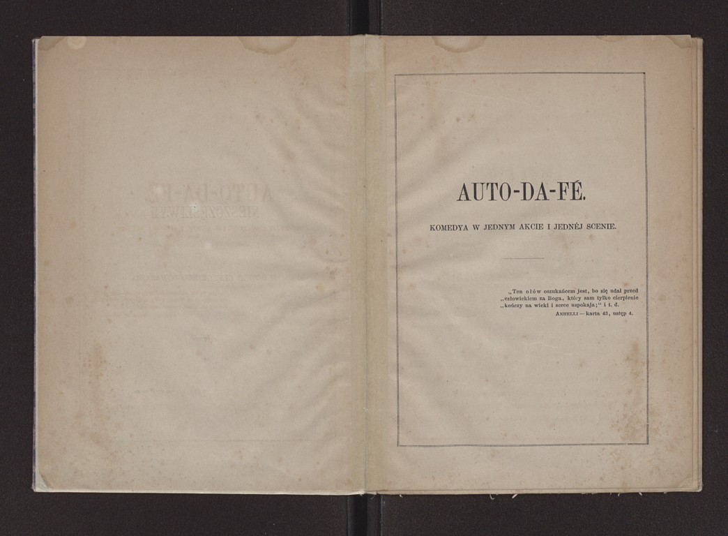 Cyprian Kamil Norwid "Auto-da-fé: komedya w jednym akcie" (strona tytułowa, 1859 r.), [online] Warszawa: Narodowy Instytut Audiowizualny [dostęp 03.04.2026]. Dostępny w internecie: http://www.ipsb.nina.gov.pl/a/foto/cyprian-kamil-norwid-auto-da-f-komedya-w-jednym-akcie-strona-tytulowa-1859-r