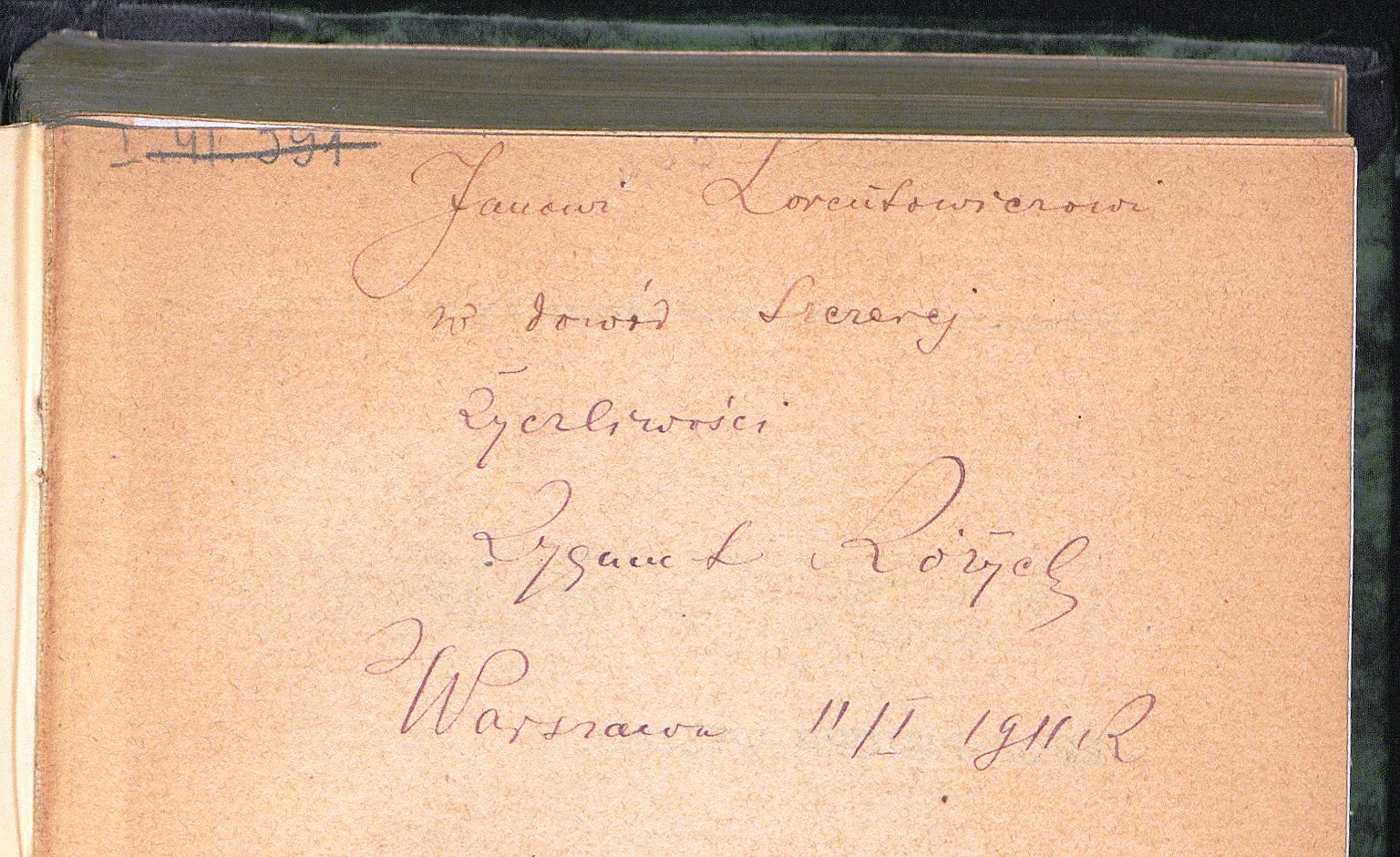 , Dedykacja napisana przez Zygmunta Różyckiego., [w:] Polski słownik biograficzny, t. ,