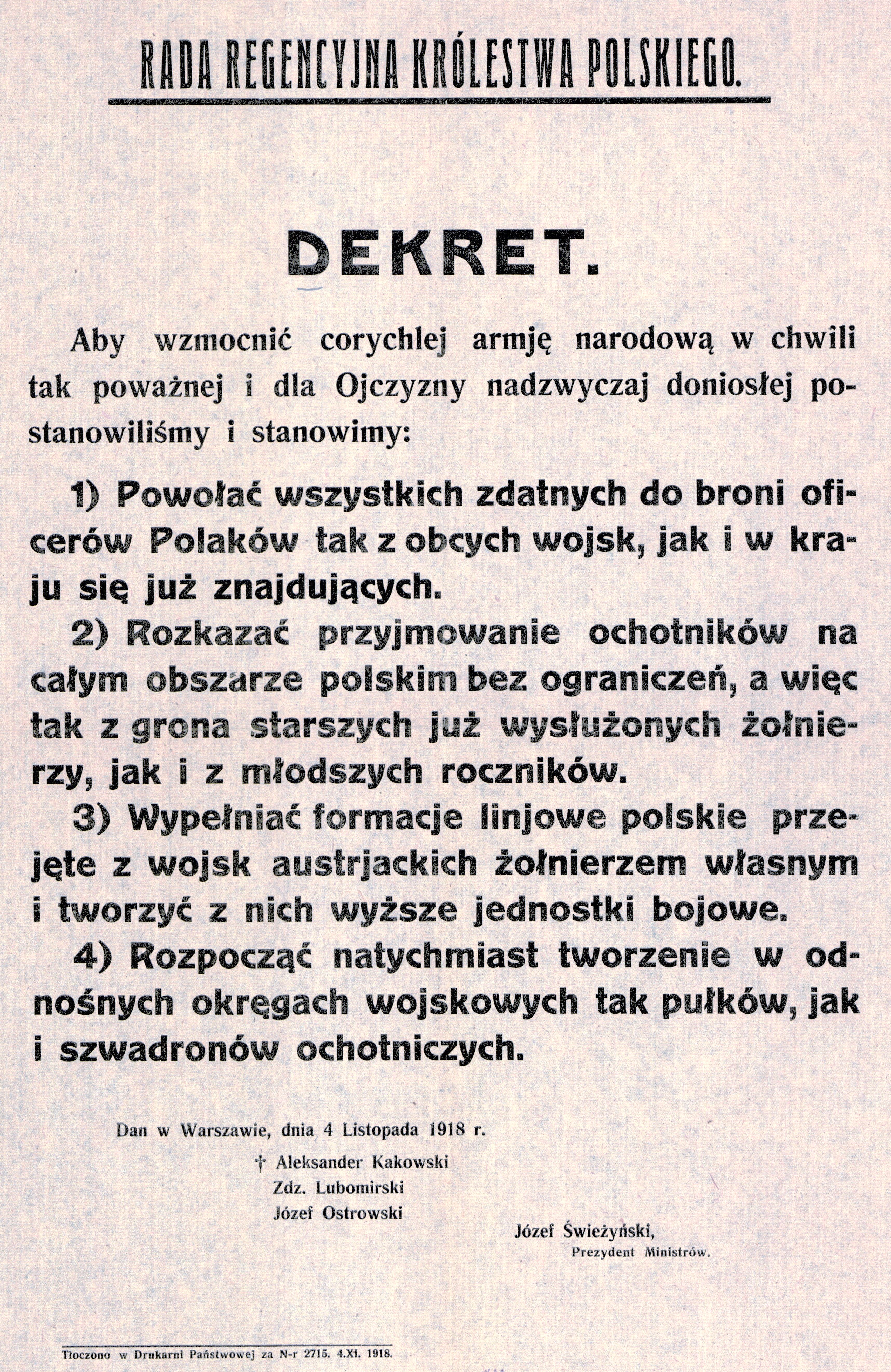 Dekret. [Inc.:] Aby wzmocnić corychlej armję narodową w chwili tak poważnej i dla Ojczyzny nadzwyczaj doniosłej [...], [online] Warszawa: Narodowy Instytut Audiowizualny [dostęp 27.02.2026]. Dostępny w internecie: http://www.ipsb.nina.gov.pl/a/foto/dekret-inc-aby-wzmocnic-corychlej-armje-narodowa-w-chwili-tak-powaznej-i-dla-ojczyzny-nadzwyczaj-donioslej