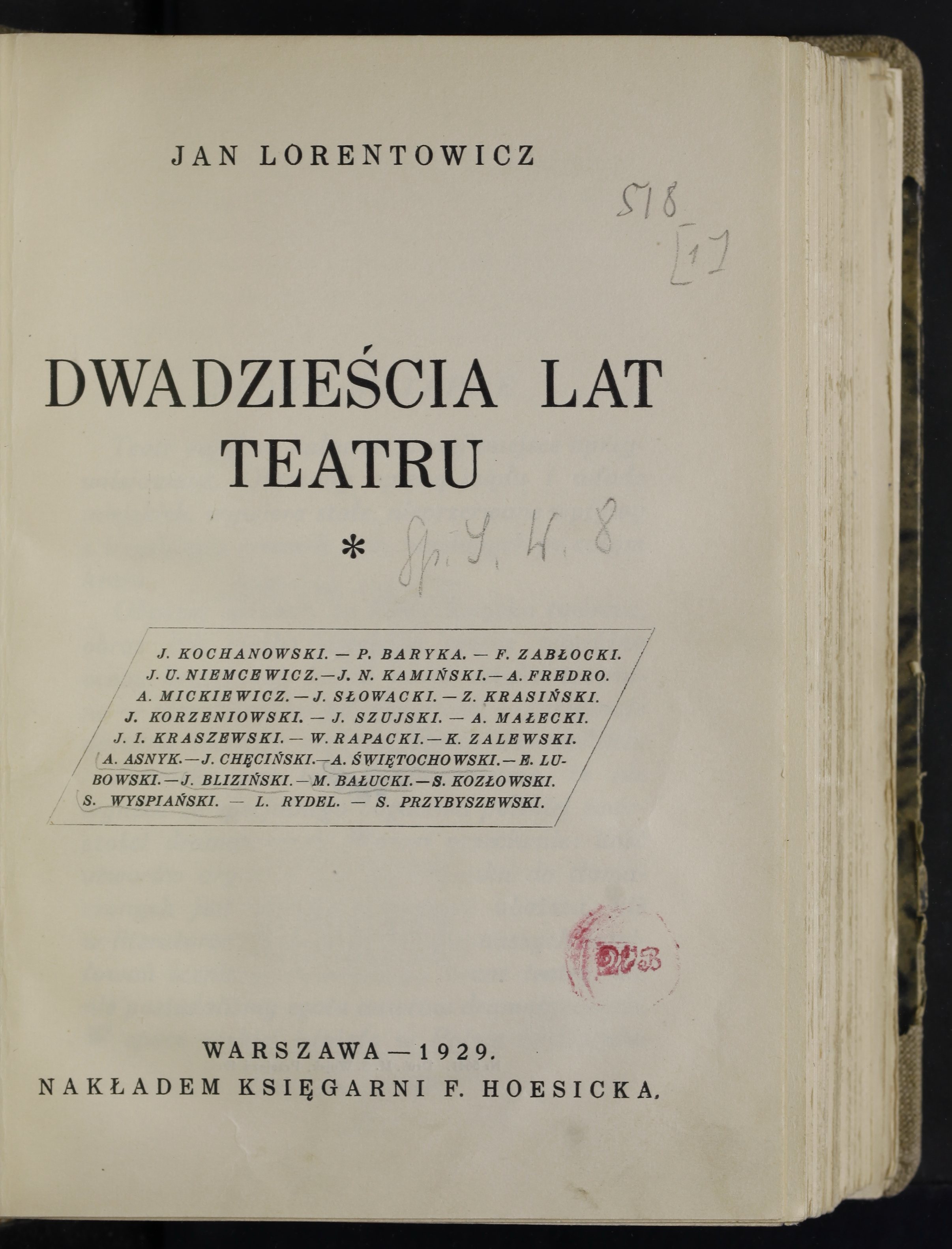 , "Dwadzieścia lat teatru. 1" Jana Lorentowicza., [w:] Polski słownik biograficzny, t. ,