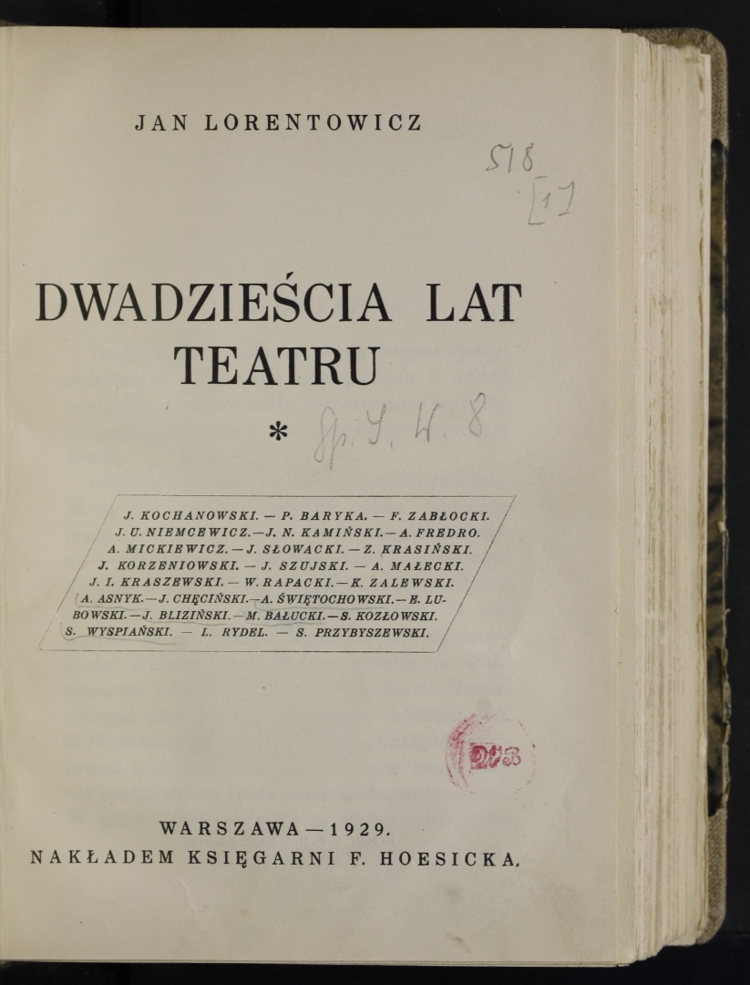 "Dwadzieścia lat teatru. 1" Jana Lorentowicza., [online] Warszawa: Narodowy Instytut Audiowizualny [dostęp 21.04.2026]. Dostępny w internecie: http://www.ipsb.nina.gov.pl/a/foto/dwadziescia-lat-teatru-1-jana-lorentowicza