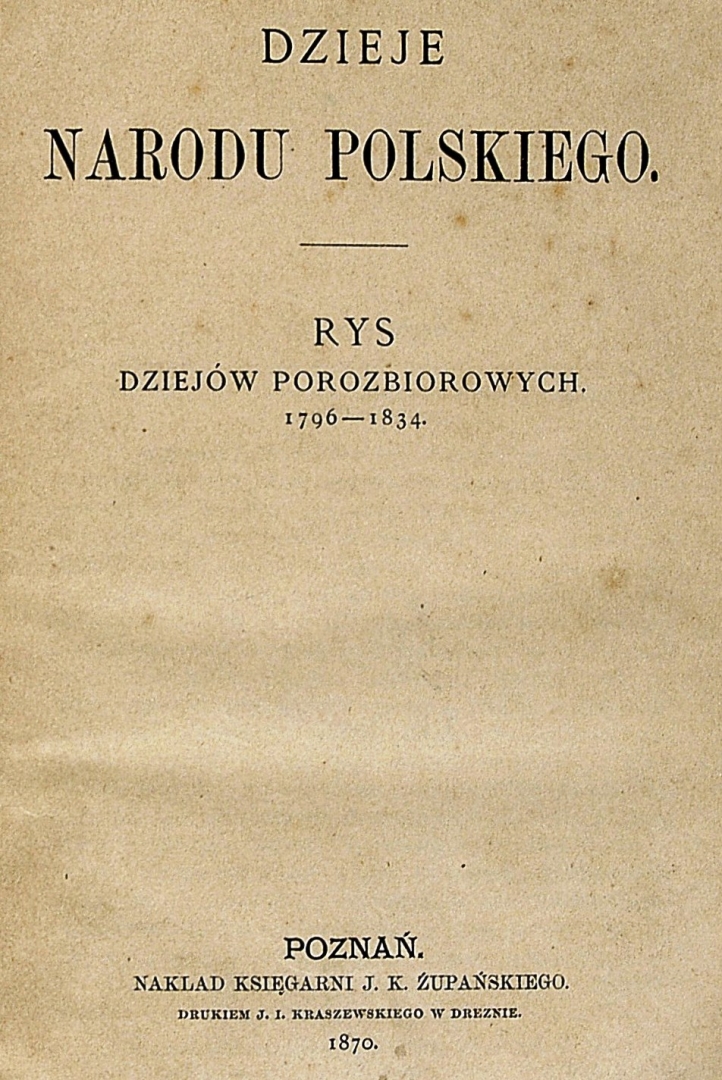 "Dzieje narodu polskiego: rys dziejów porozbiorowych 1796-1834" Teodora Morawskiego., [online] Warszawa: Narodowy Instytut Audiowizualny [dostęp 13.04.2026]. Dostępny w internecie: http://www.ipsb.nina.gov.pl/a/foto/dzieje-narodu-polskiego-rys-dziejow-porozbiorowych-1796-1834-teodora-morawskiego