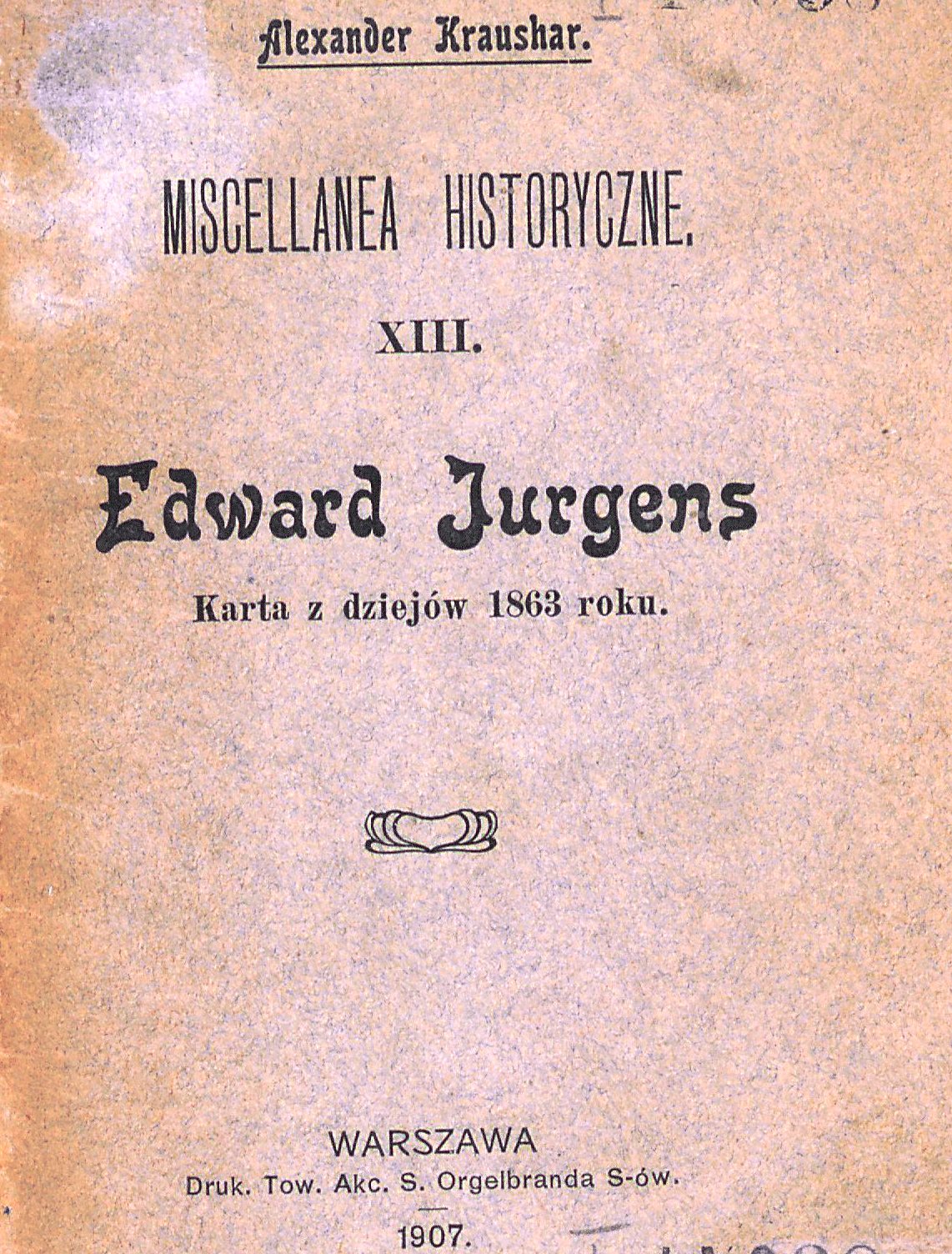 "Edward Jurgens : karta z dziejów 1863 roku" Aleksandara Kraushara., [online] Warszawa: Narodowy Instytut Audiowizualny [dostęp 11.04.2026]. Dostępny w internecie: http://www.ipsb.nina.gov.pl/a/foto/edward-jurgens-karta-z-dziejow-1863-roku-aleksandara-kraushara