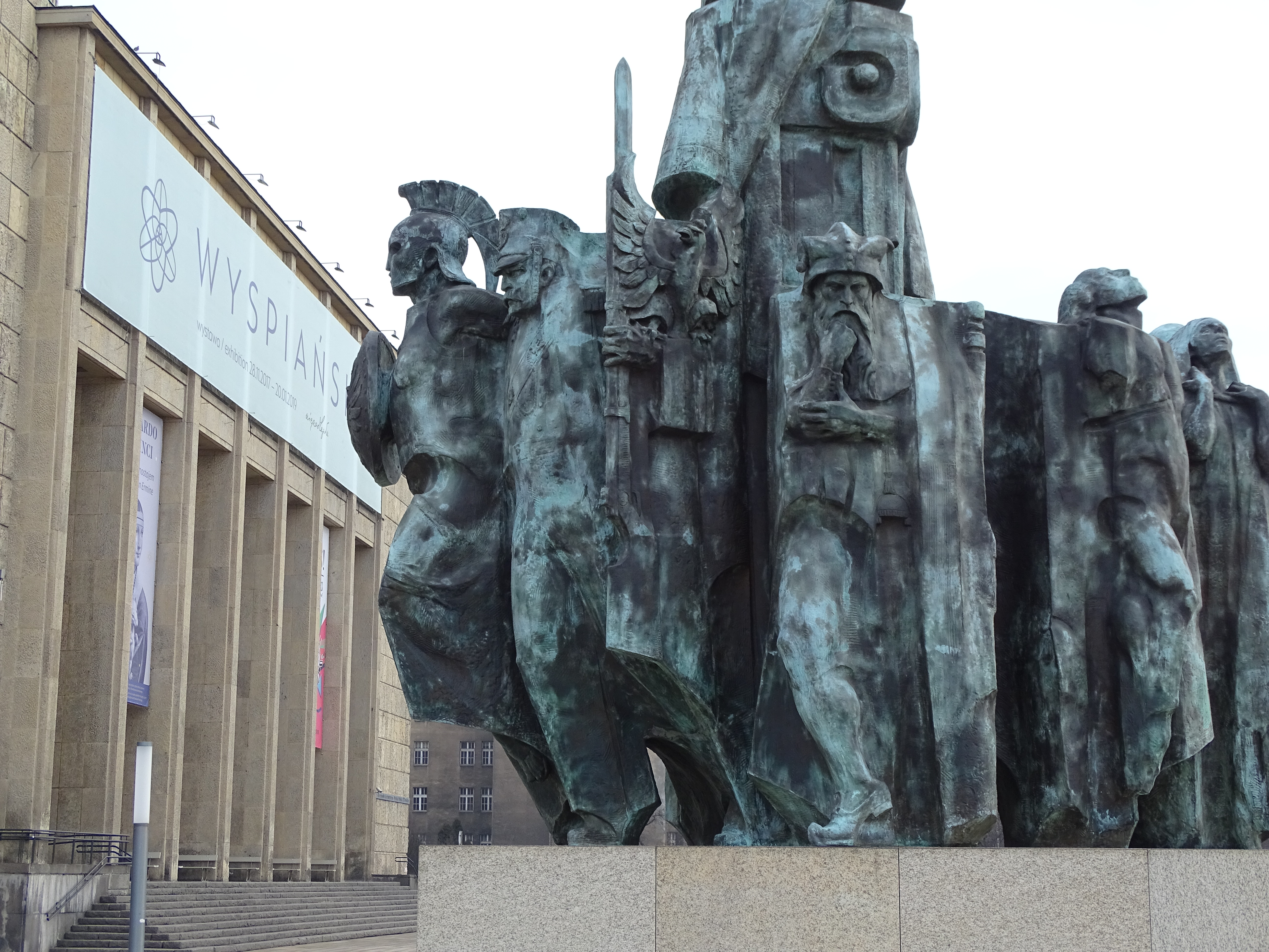 Fragment pomnika Stanisława Wyspiańskiego w Krakowie z widocznym w tle gmachem Muzeum Narodowego i banerem wystawy "Wyspiański"., [online] Warszawa: Narodowy Instytut Audiowizualny [dostęp 14.04.2026]. Dostępny w internecie: http://www.ipsb.nina.gov.pl/a/foto/fragment-pomnika-stanislawa-wyspianskiego-w-krakowie-z-widocznym-w-tle-gmachem-muzeum-narodowego-i-banerem-wystawy-wyspianski