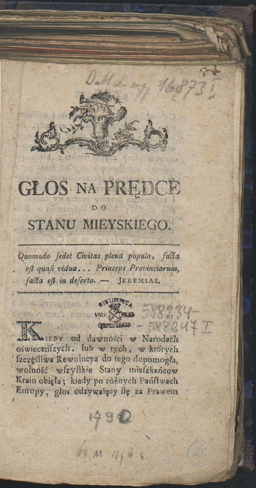 , Franciszek Salezy Jezierski "Głos na prędce do stanu mieyskiego" (strona tytułowa), [w:] Polski słownik biograficzny, t. ,