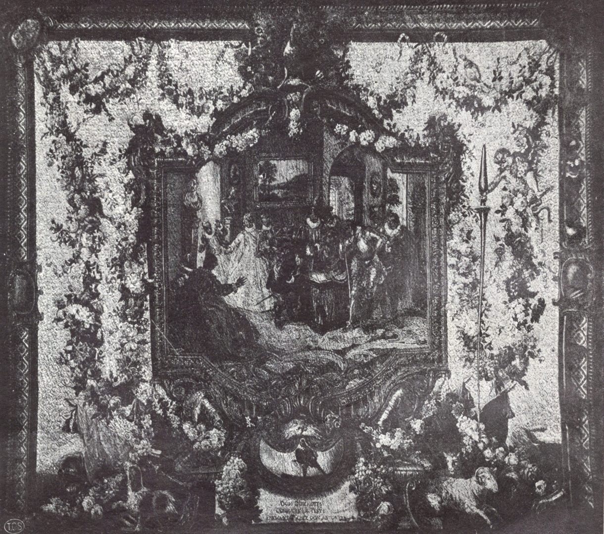 Deseń na gobelinie przedstawie scenę z Don Kiszota.
