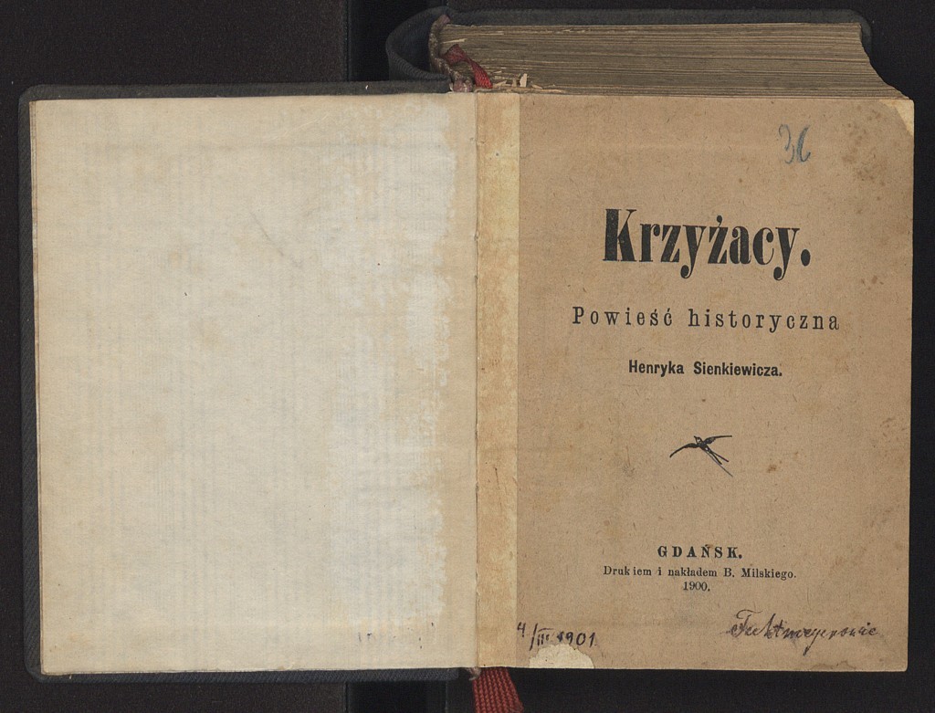 Henryk Sienkiewicz "Krzyżacy" (wyd. 1900 r.), [online] Warszawa: Narodowy Instytut Audiowizualny [dostęp 13.04.2026]. Dostępny w internecie: http://www.ipsb.nina.gov.pl/a/foto/henryk-sienkiewicz-krzyzacy-wyd-1900-r
