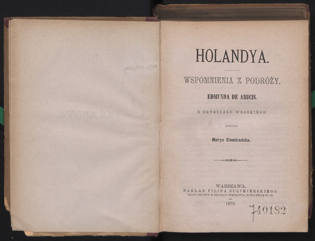 "Holandya: wspomnienia z podróży Edmunda de Amicis" (tłum. Maria Obrąpalska), [online] Warszawa: Narodowy Instytut Audiowizualny [dostęp 05.03.2026]. Dostępny w internecie: http://www.ipsb.nina.gov.pl/a/foto/holandya-wspomnienia-z-podrozy-edmunda-de-amicis-tlum-maria-obrapalska