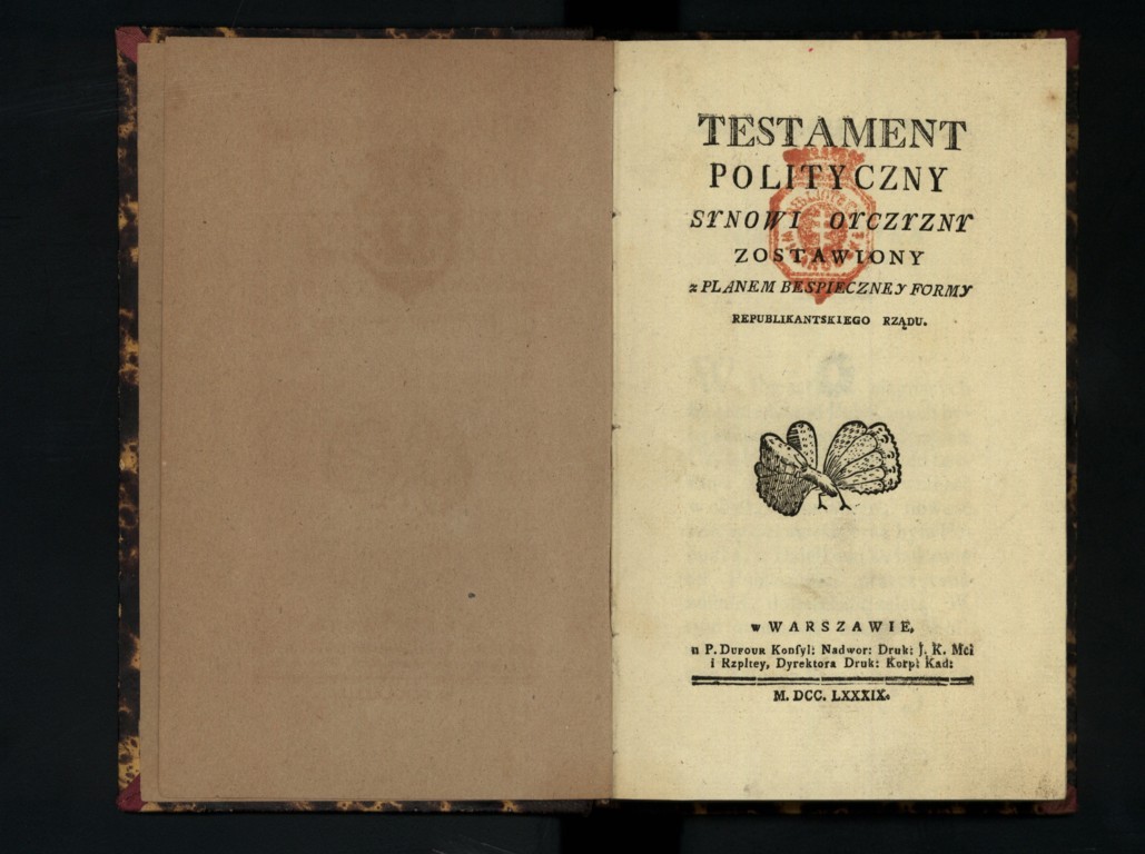 Ignacy Łobarzewski "Testament polityczny synowi oyczyzny zostawiony z planem bespieczney formy republikantskiego rządu" (strona tytułowa), [online] Warszawa: Narodowy Instytut Audiowizualny [dostęp 03.04.2026]. Dostępny w internecie: http://www.ipsb.nina.gov.pl/a/foto/ignacy-lobarzewski-testament-polityczny-synowi-oyczyzny-zostawiony-z-planem-bespieczney-formy-republikantskiego-rzadu-strona-tytulowa