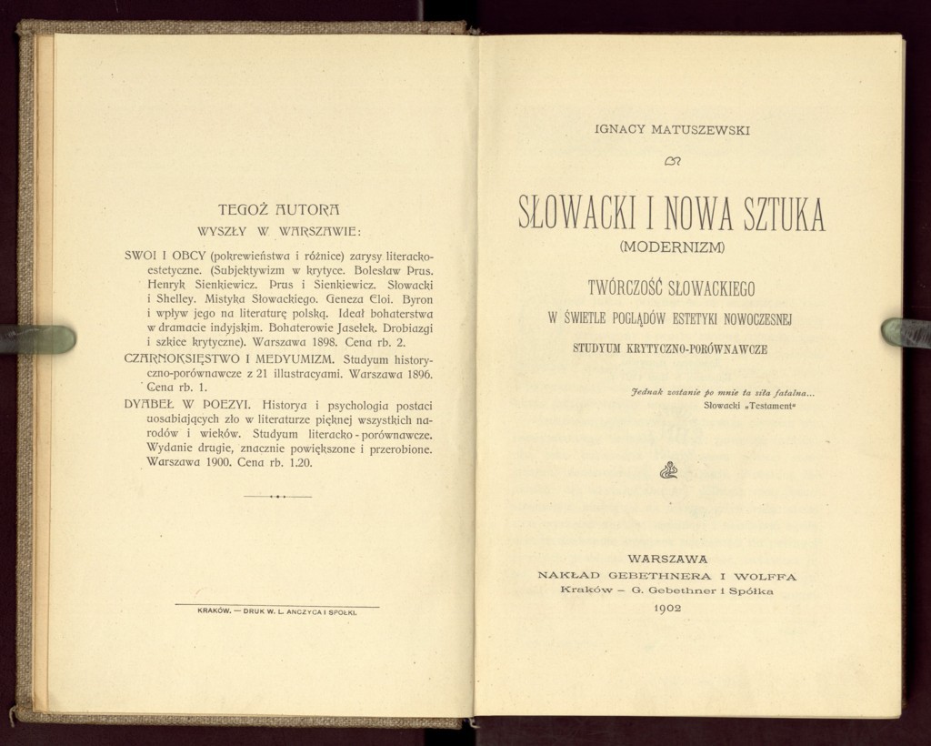 Ignacy Matuszewski "Słowacki i nowa sztuka", [online] Warszawa: Narodowy Instytut Audiowizualny [dostęp 13.04.2026]. Dostępny w internecie: http://www.ipsb.nina.gov.pl/a/foto/ignacy-matuszewski-slowacki-i-nowa-sztuka