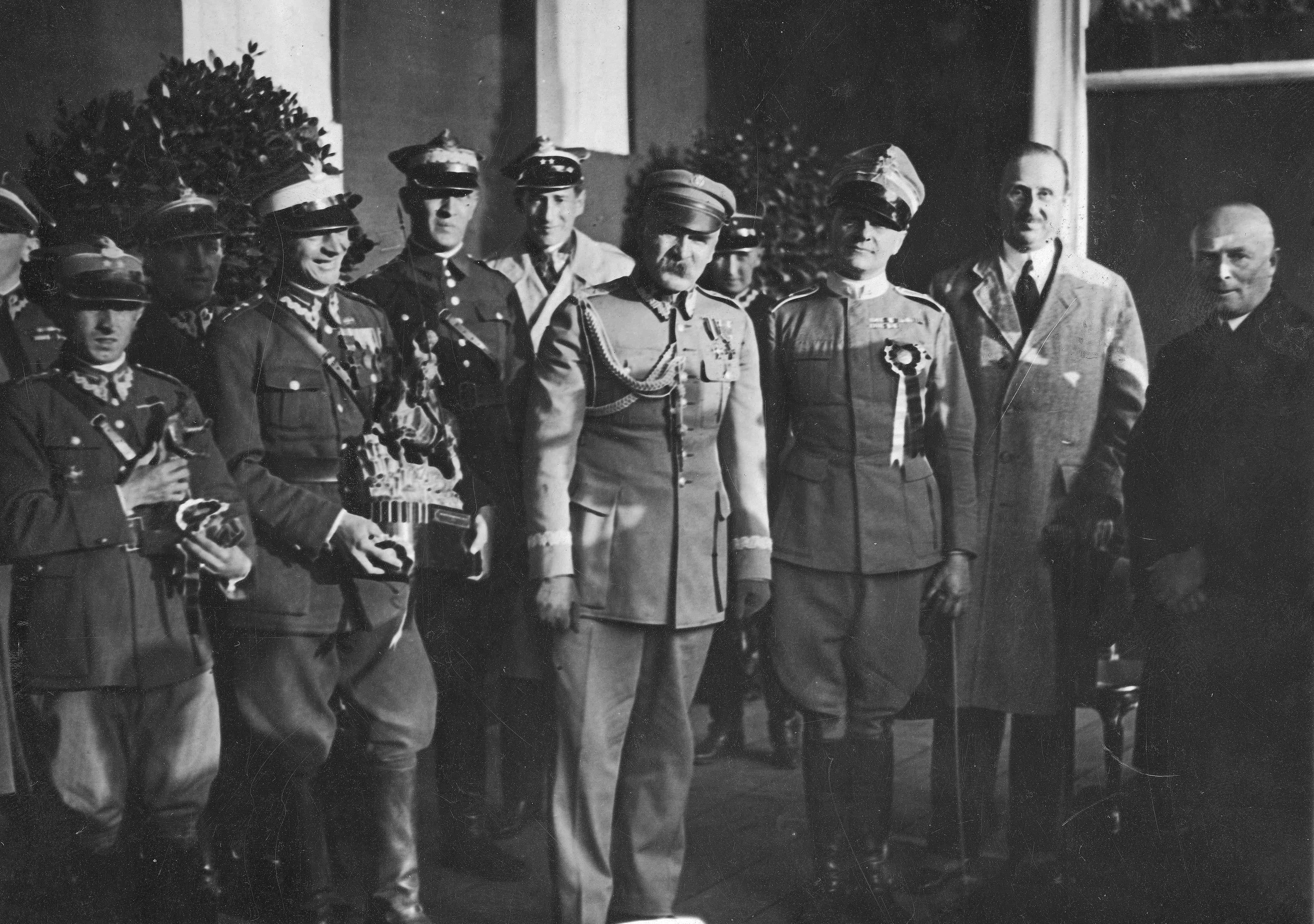 Marszałek Józef Piłsudski (4. z prawej) z mjr. Borsarellim (3. z prawej), zwycięzcą zawodów hippicznych. Widoczni m.in.: ambasador Królestwa Włoch Alberto Martin Franklin (2. z prawej), poseł czechosłowacki dr Vaclav Girsa (1. z prawej), ppłk. Józef Beck (na lewo za marszałkiem), gen. Gustaw Orlicz-Dreszer (3. z lewej).