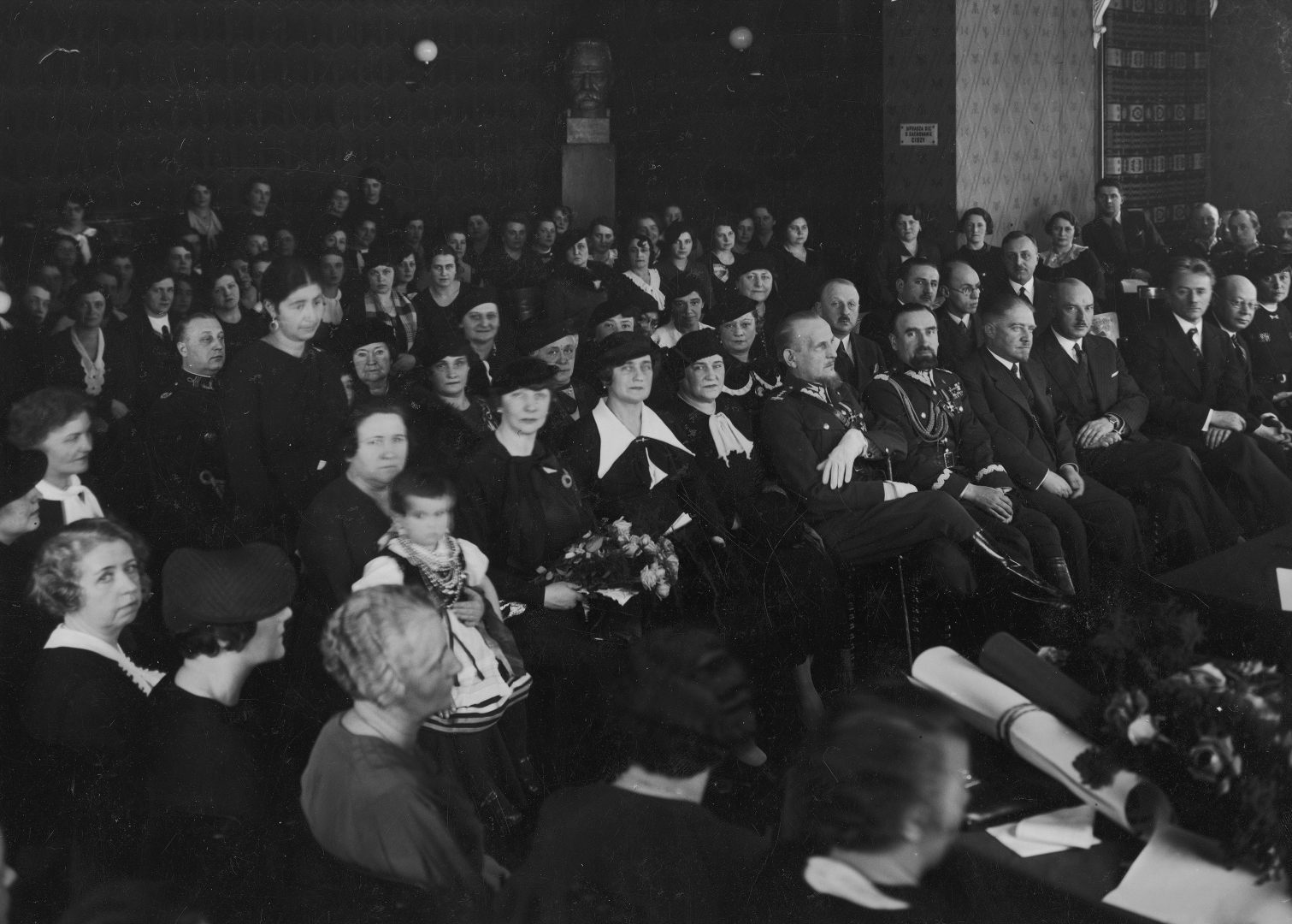 Widoczni m.in.: komendant główny Policji Państwowej gen. Józef Kordian Zamorski (siedzi w środku pierwszego rzędu), płk Janusz Jagrym-Maleszewski (siedzi na lewo od gen. Zamorskiego, w białych rękawiczkach), prezes Najwyższej Izby Kontroli Jakub Marian Krzemieński (siedzi na prawo od gen. Zamorskiego).