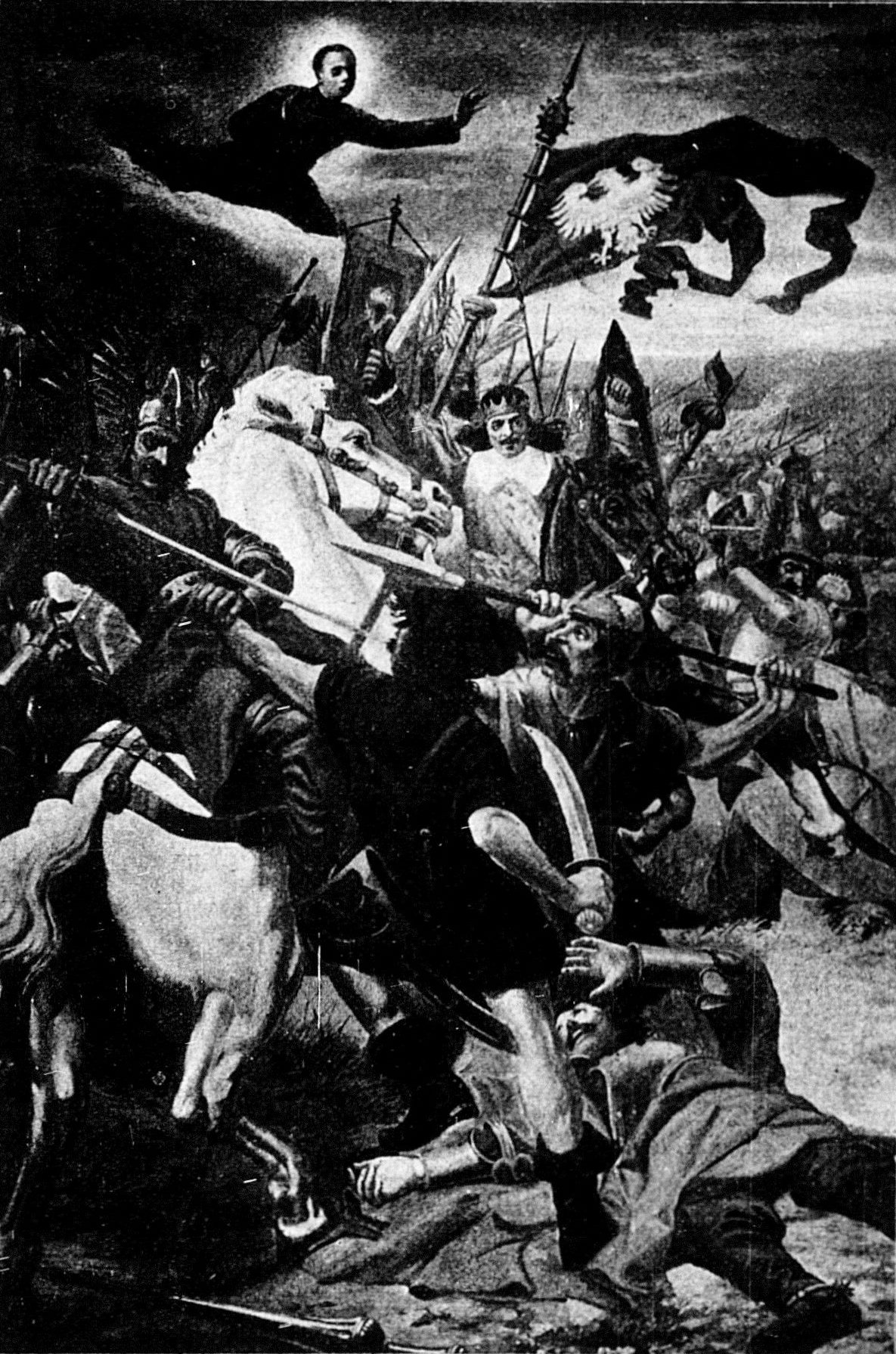 "Jan Kazimierz gromi Szwedów". Kopia obrazu umieszczonego w kaplicy polskiej w kościele św. Joachima w Rzymie., [online] Warszawa: Narodowy Instytut Audiowizualny [dostęp 28.02.2026]. Dostępny w internecie: http://www.ipsb.nina.gov.pl/a/foto/jan-kazimierz-gromi-szwedow