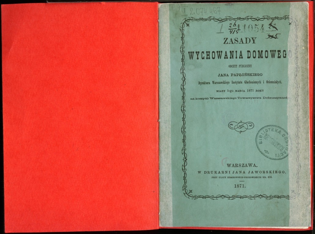 Jan Papłoński "Zasady i zakres wychowania domowego" (strona tytułowa), [online] Warszawa: Narodowy Instytut Audiowizualny [dostęp 04.04.2026]. Dostępny w internecie: http://www.ipsb.nina.gov.pl/a/foto/jan-paplonski-zasady-i-zakres-wychowania-domowego-strona-tytulowa
