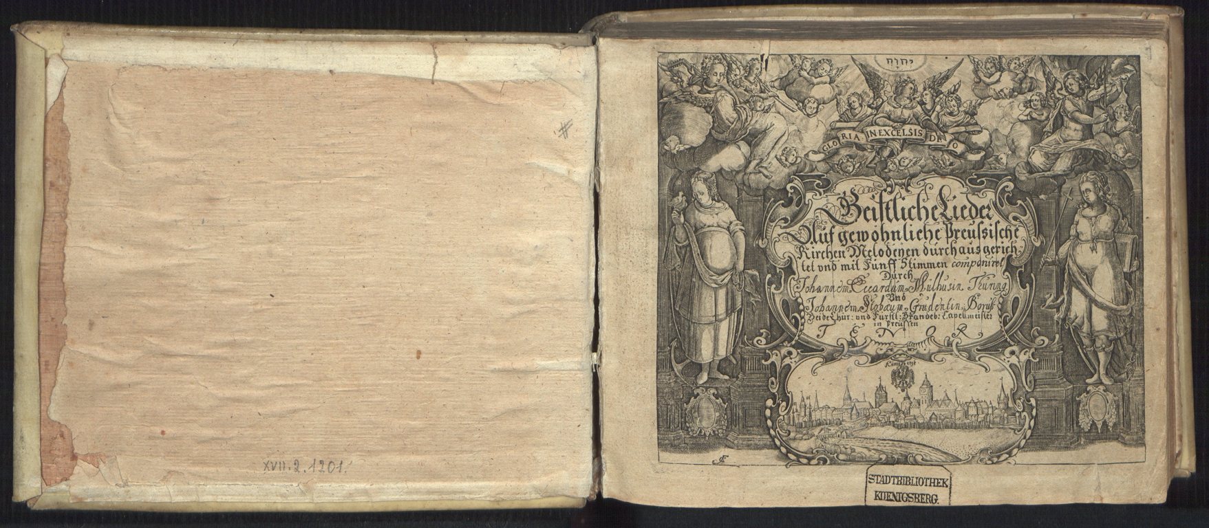 , Johannes Eccard "Geistliche Lieder : Auf gewöhnliche Preussische KirchenMelodeyen durchausgerichtet vnd mit Fünff Stimmen" (strona tytułowa, druk Jerzy Rhete), [w:] Polski słownik biograficzny, t. ,