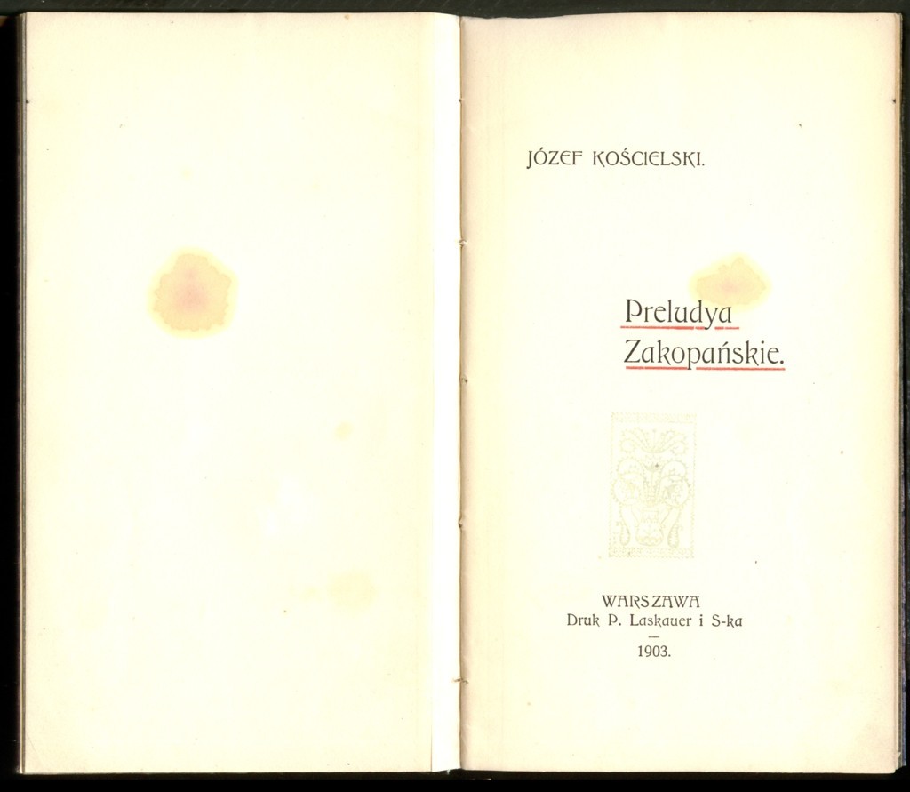 Józef Teodor Kościelski, "Preludya zakopiańskie" (strona tytułowa), [online] Warszawa: Narodowy Instytut Audiowizualny [dostęp 13.04.2026]. Dostępny w internecie: http://www.ipsb.nina.gov.pl/a/foto/jozef-teodor-koscielski-preludya-zakopianskie-strona-tytulowa