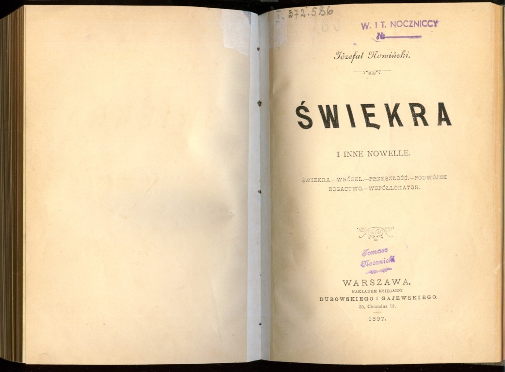 Józefat Nowiński "Świekra i inne nowelle" (strona tytułowa), [online] Warszawa: Narodowy Instytut Audiowizualny [dostęp 16.04.2026]. Dostępny w internecie: http://www.ipsb.nina.gov.pl/a/foto/jozefat-nowinski-swiekra-i-inne-nowelle-strona-tytulowa