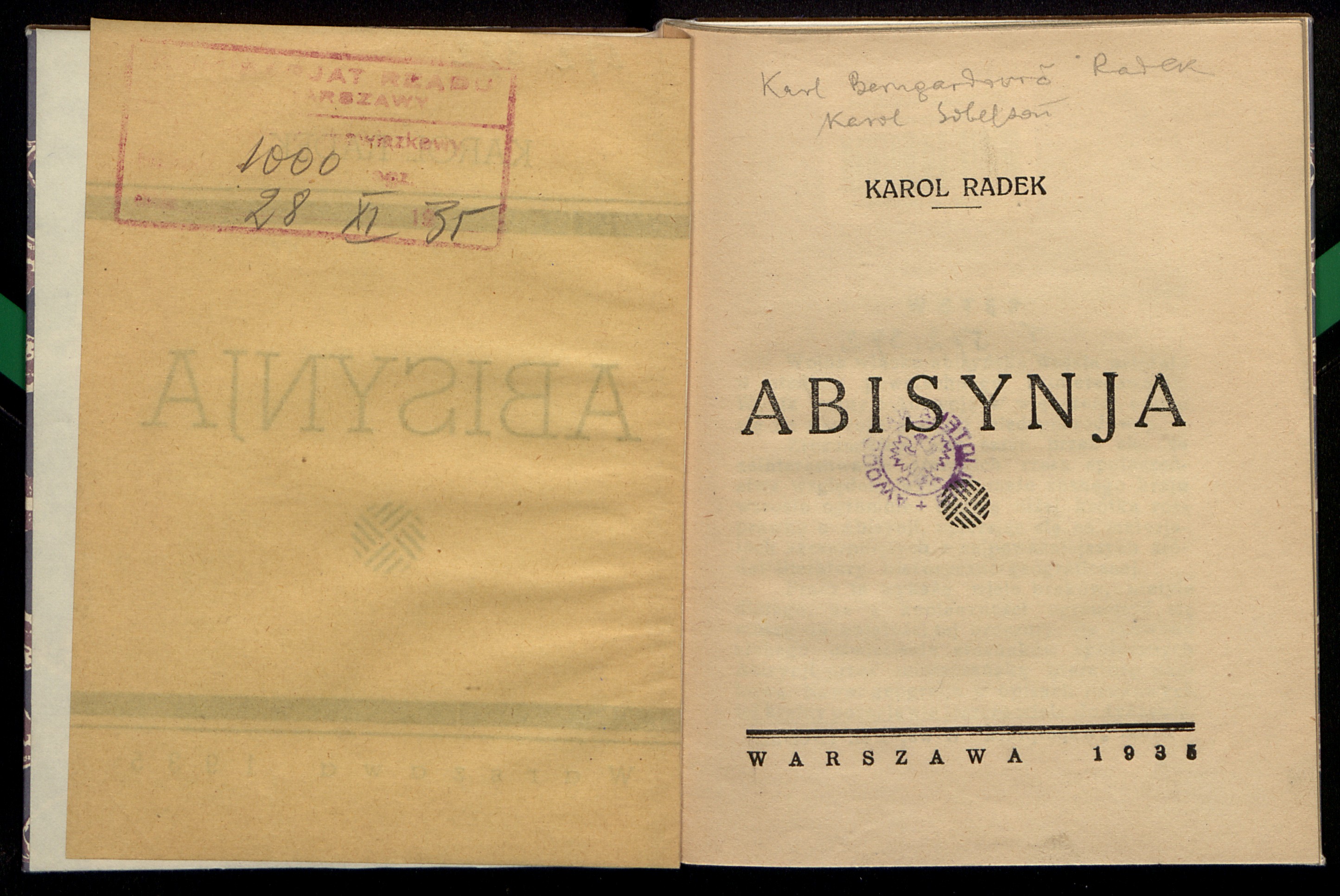Karol Radek "Abisynja" (strona tytułowa), [online] Warszawa: Narodowy Instytut Audiowizualny [dostęp 03.04.2026]. Dostępny w internecie: http://www.ipsb.nina.gov.pl/a/foto/karol-radek-abisynja-strona-tytulowa