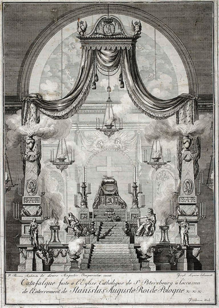 "Katafalk Stanisława Augusta wystawiony w kościele katolickim św. Katarzyny w Petersburgu w dniach 5-8 marca 1798 roku.", [online] Warszawa: Narodowy Instytut Audiowizualny [dostęp 13.04.2026]. Dostępny w internecie: http://www.ipsb.nina.gov.pl/a/foto/katafalk-stanislawa-augusta-wystawiony-w-kosciele-katolickim-sw-katarzyny-w-petersburgu-w-dniach-5-8-marca-1798-roku