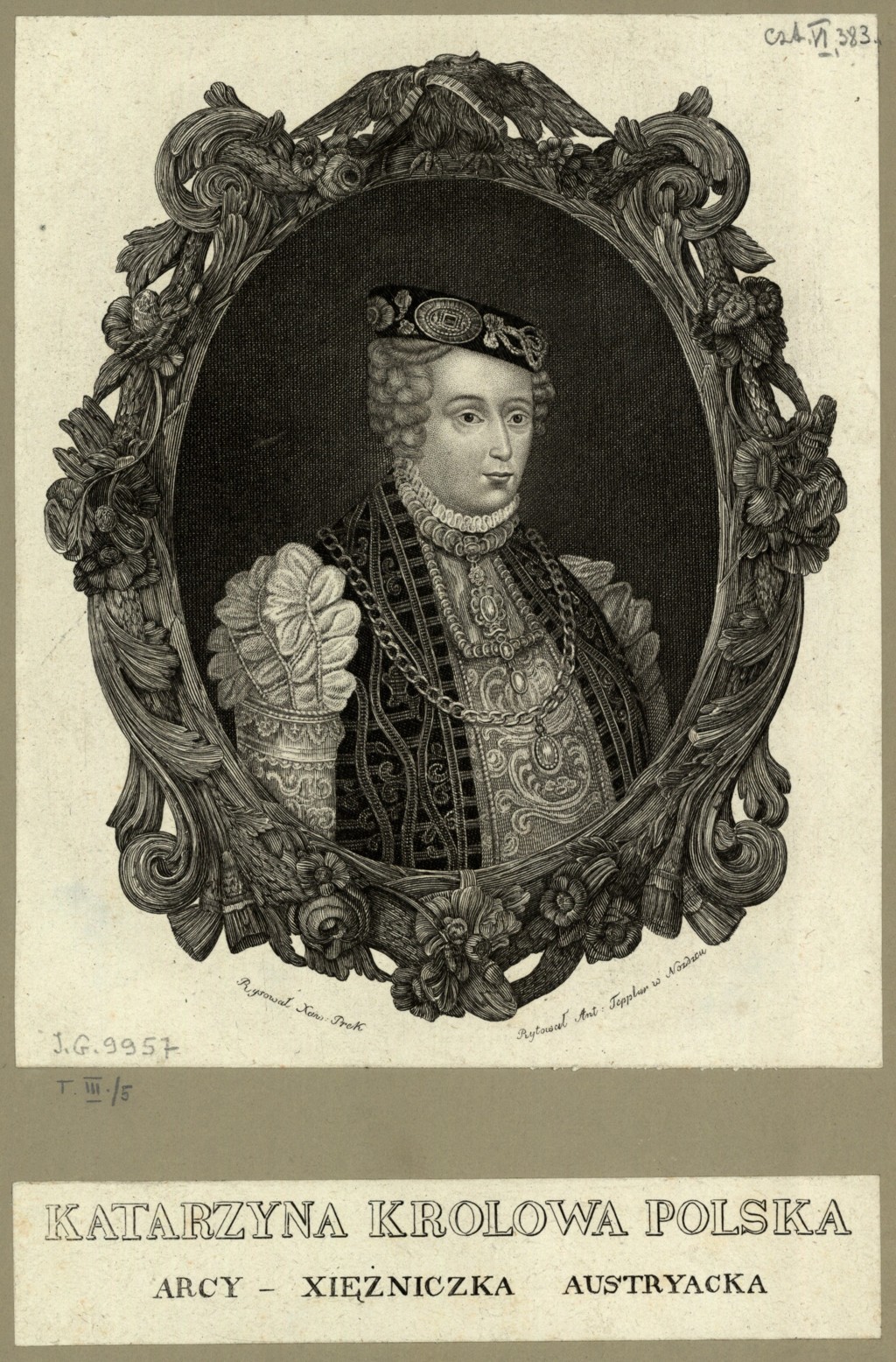 Katarzyna, królowa polska (autor Anton Tepplar), grafika wg rysunku Franciszka Preka., [online] Warszawa: Narodowy Instytut Audiowizualny [dostęp 13.04.2026]. Dostępny w internecie: http://www.ipsb.nina.gov.pl/a/foto/katarzyna-krolowa-polska-autor-anton-tepplar-grafika-wg-rysunku-franciszka-preka