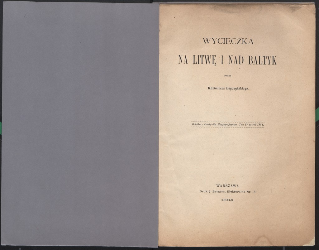 , Kazimierz Łapczyński "Wycieczka na Litwę i nad Bałtyk" (strona tytułowa), [w:] Polski słownik biograficzny, t. ,