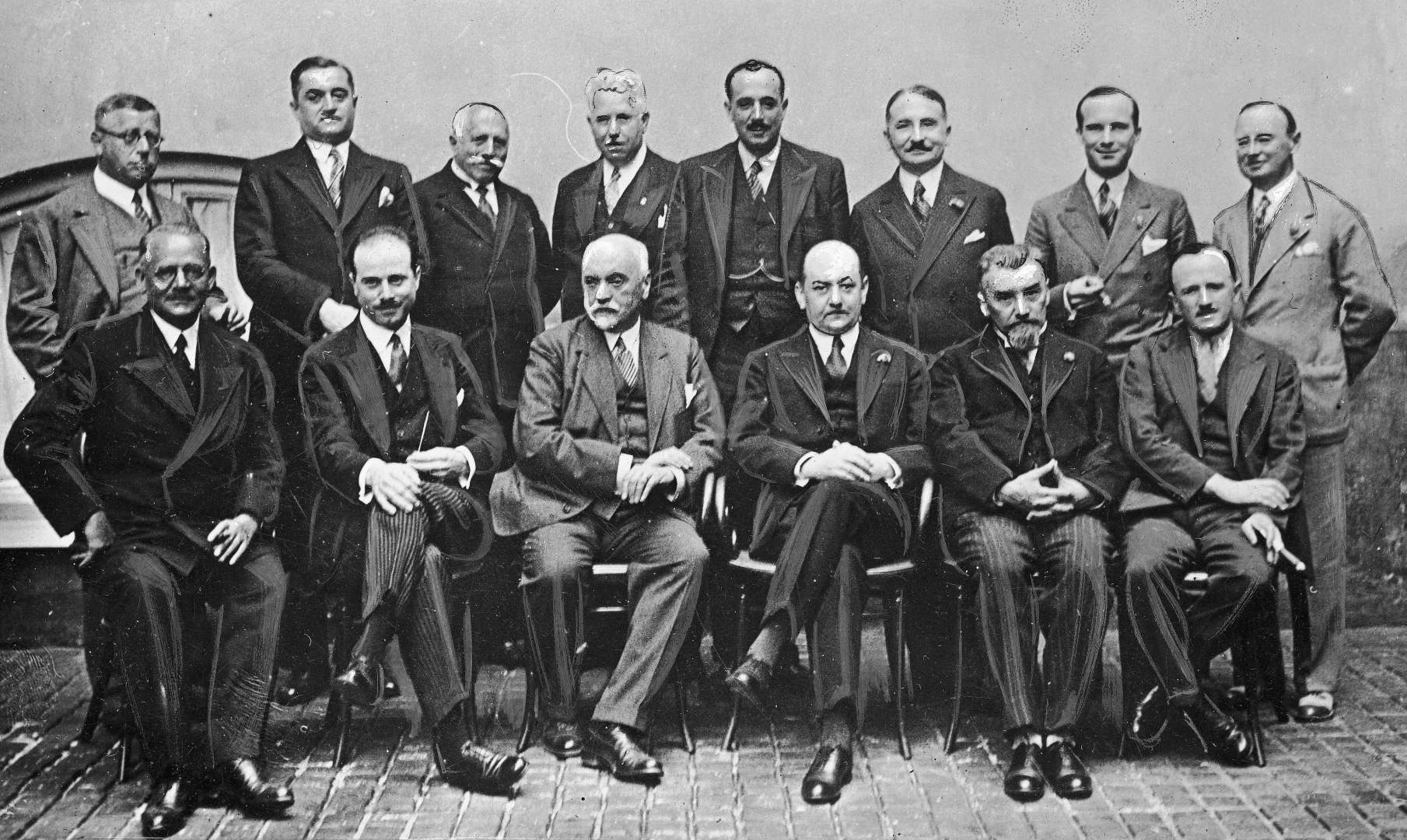 Fotografia grupowa członków komisji. Siedzą od lewej: Remschard (Niemcy), dr Del Rio (Włochy), Pschorr (Izba Handlowa w Monachium), dr Weidelt, przewodniczący konferencji (dyrektor Deutsche Bank), Adam Krzyżanowski (profesor Uniwersytetu Jagiellońskiego), Owen Jones (Wielka Brytania). Stoją od lewej: dr Konrad (Niemcy), dr Hergt (Niemcy), dr Gabler (przedstawiciel rządu bawarskiego), Gerstl (Niemcy), Schuster (Wielka Brytania), prof. Misses (Austria), Seynes Larlanque (Francja), dr Simon (Niemcy).