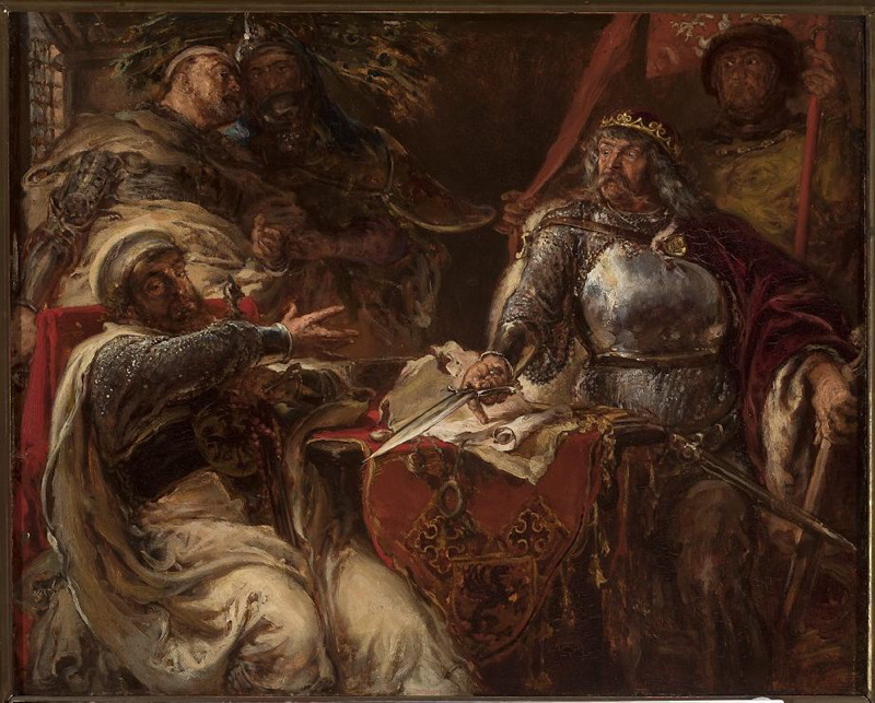 "Król Władysław Łokietek zrywa układy z Krzyżakami" Jana Matejki., [online] Warszawa: Narodowy Instytut Audiowizualny [dostęp 27.02.2026]. Dostępny w internecie: http://www.ipsb.nina.gov.pl/a/foto/krol-wladyslaw-lokietek-zrywa-uklady-z-krzyzakami-jana-matejki