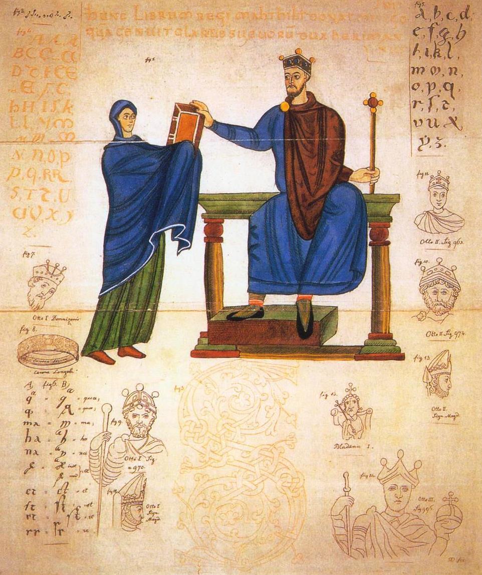 "Księżna Matylda wręcza księgę liturgiczną Mieszkowi II". share Podziel się facebook google + twitter linkedin clipboard envelope print quote picture add × Cytowane źródła Cytowanie źródła on-line, czyli Internetowego Polskiego Słownika Biograficznego "Księżna Matylda wręcza księgę liturgiczną Mieszkowi II"., [online] Warszawa: Narodowy Instytut Audiowizualny [dostęp 13.04.2026]. Dostępny w internecie: http://www.ipsb.nina.gov.pl/a/foto/ksiezna-matylda-wrecza-ksiege-liturgiczna-mieszkowi-ii Cytowanie wydania drukowanego, czyli Polskiego Słownika Biograficznego , "Księżna Matylda wręcza księgę liturgiczną Mieszkowi II"., [w:] Polski słownik biograficzny, t. , IPSBID: ipsb-fo-87004 × Wyślij link do strony E-mail odbiorcy wiadomości: To pole jest wymaganeWpisz poprawny adres e-mail Twój adres e-mail: To pole jest wymaganeWpisz poprawny adres e-mail Podgląd wiadomości, która zostanie wysłana: Witaj, [Tutaj podany Twój e-mail] poleca Ci treść z iPSB (internetowym Polskim Słowniku Biograficznym) "Księżna Matylda wręcza księgę liturgiczną Mieszkowi II". × Dodaj do kolekcji wybierz kolekcję, do której chcesz dodać ten artykuł: lub wpisz nazwę nowej kolekcji, do której chcesz dodać ten artykuł: : To pole jest wymagane Dodaj do kolekcji Wybierz kolekcję Swoje kolekcje znajdziesz w profilu. Wystarczy kliknąć ikonę zębatego koła w górnym prawym rogu. Możesz je zobaczyć tu: moje kolekcje. × Dodaj do kolekcji Element został dodany do Twojej kolekcji. Swoje kolekcje możesz zobaczyć tu: moje kolekcje. × Dodaj do kolekcji Aby dodawać materiały do kolekcji musisz się zalogować. OPIS POSTACI POWIąZANE Grafika z pierwszej ćwierci XI wieku. Skan z książki Christopha Stiegemanna i Martina Krokera "Für Königtum und Himmelreich. 1000 Jahre Bischof Meinwerk von Paderborn", Regensburg 2009, s. 133. Źródło kopii cyfrowej; Wikimedia Commons. Postaci powiązane Mieszko II Lambert 990 - 1034-05-10 król Polski więcej >> Zobacz zdjęcie w najwyższej jakości