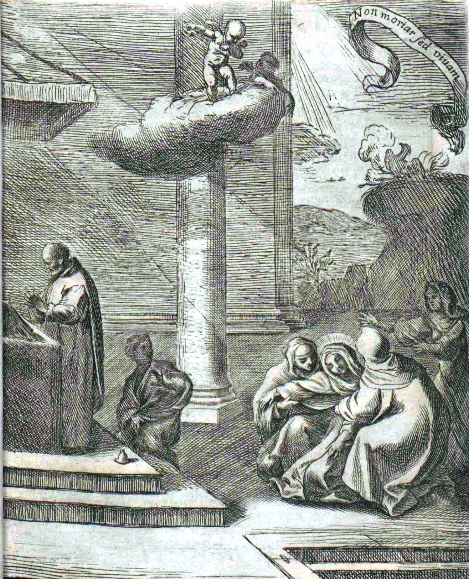 Miedzioryt opublikowany w książce Jana Sebastiana Piskorskiego "Flores vitae B. Salomeae virginis, principis Poloniae, reginae Haliciae, ordinis S. Clarae primae in Polonia fundatricis : iconibus, hierogliphicis, lemmatis, epigrammatis. explicatius vernantes", wydanej w 1691 roku w Krakowie.