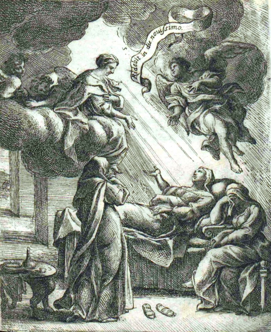 Miedzioryt opublikowany w książce Jana Sebastiana Piskorskiego "Flores vitae B. Salomeae virginis, principis Poloniae, reginae Haliciae, ordinis S. Clarae primae in Polonia fundatricis : iconibus, hierogliphicis, lemmatis, epigrammatis. explicatius vernantes", wydanej w 1691 roku w Krakowie.