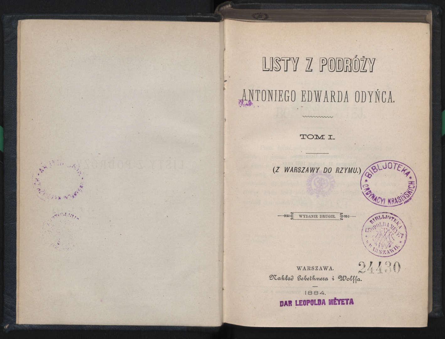 "Listy z podróży Antoniego Edwarda Odyńca. T. 1, (Z Warszawy do Rzymu).", [online] Warszawa: Narodowy Instytut Audiowizualny [dostęp 28.02.2026]. Dostępny w internecie: http://www.ipsb.nina.gov.pl/a/foto/listy-z-podrozy-antoniego-edwarda-odynca-t-1-z-warszawy-do-rzymu