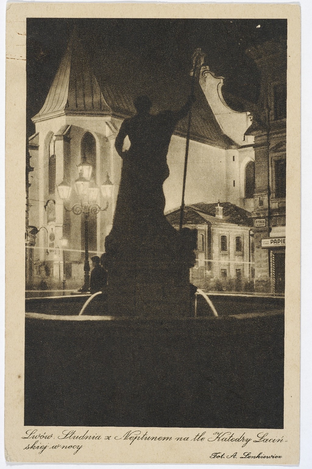 Lwów, studnia z Neptunem na tle katedry łacińskiej w nocy. (fot. Adam Lenkiewicz), [online] Warszawa: Narodowy Instytut Audiowizualny [dostęp 13.04.2026]. Dostępny w internecie: http://www.ipsb.nina.gov.pl/a/foto/lwow-studnia-z-neptunem-na-tle-katedry-lacinskiej-w-nocy-fot-adam-lenkiewicz
