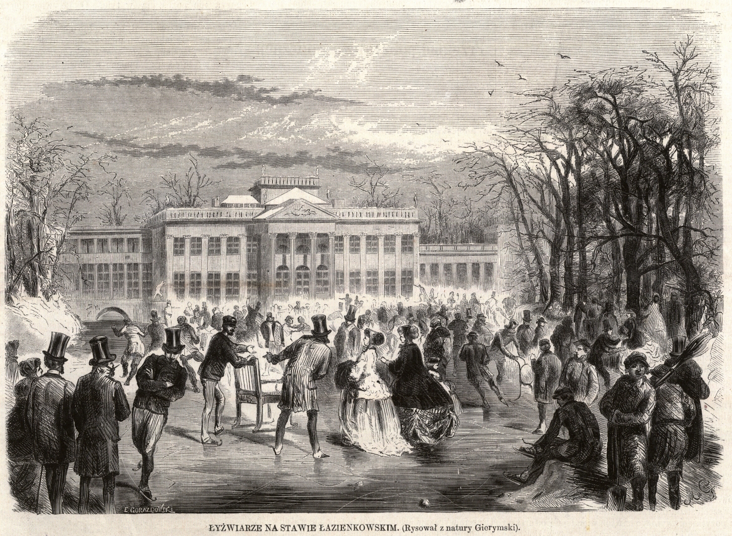 "Łyżwiarze na stawie łazienkowskim" Edwarda Gorazdowskiego., [online] Warszawa: Narodowy Instytut Audiowizualny [dostęp 13.04.2026]. Dostępny w internecie: http://www.ipsb.nina.gov.pl/a/foto/lyzwiarze-na-stawie-lazienkowskim-edwarda-gorazdowskiego