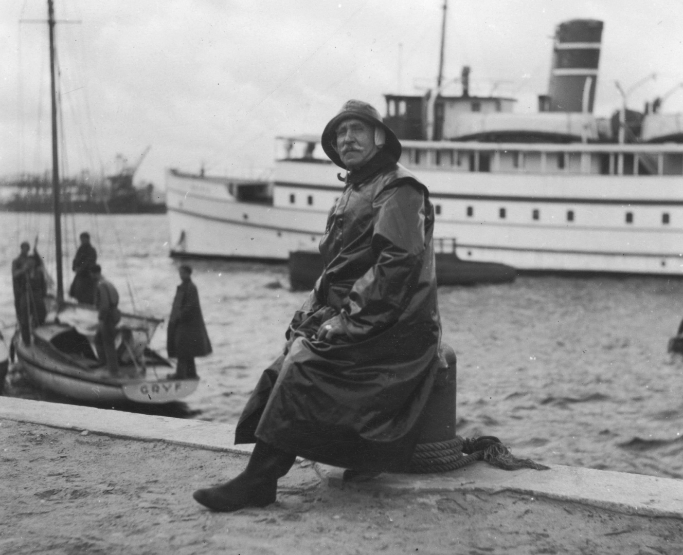 Marian Zaruski - kapitan harcerskiego szkunera "Zawisza Czarny" na nabrzeżu portu ubrany w sztormiak., [online] Warszawa: Narodowy Instytut Audiowizualny [dostęp 28.02.2026]. Dostępny w internecie: http://www.ipsb.nina.gov.pl/a/foto/marian-zaruski-kapitan-harcerskiego-szkunera-zawisza-czarny-na-nabrzezu-portu-ubrany-w-sztormiak