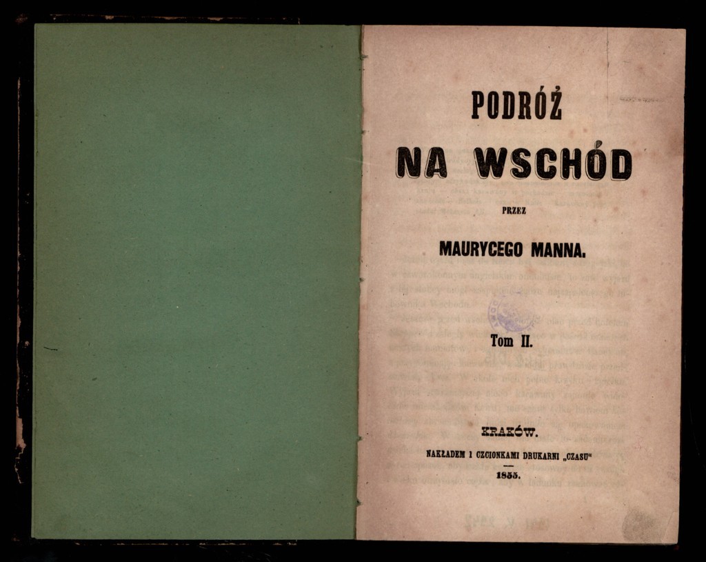 Maurycy Mann "Podróż na Wschód" (strona tytułowa), [online] Warszawa: Narodowy Instytut Audiowizualny [dostęp 15.04.2026]. Dostępny w internecie: http://www.ipsb.nina.gov.pl/a/foto/maurycy-mann-podroz-na-wschod-strona-tytulowa