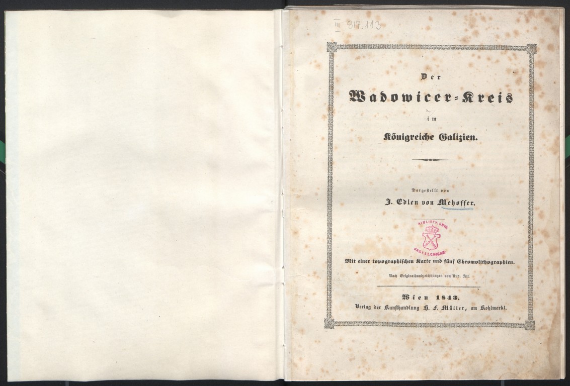 Mehoffer Joseph "Der Wadowicer-Kreis im Königreiche Galizien" (strona tytułowa), [online] Warszawa: Narodowy Instytut Audiowizualny [dostęp 13.04.2026]. Dostępny w internecie: http://www.ipsb.nina.gov.pl/a/foto/mehoffer-joseph-der-wadowicer-kreis-im-knigreiche-galizien-strona-tytulowa