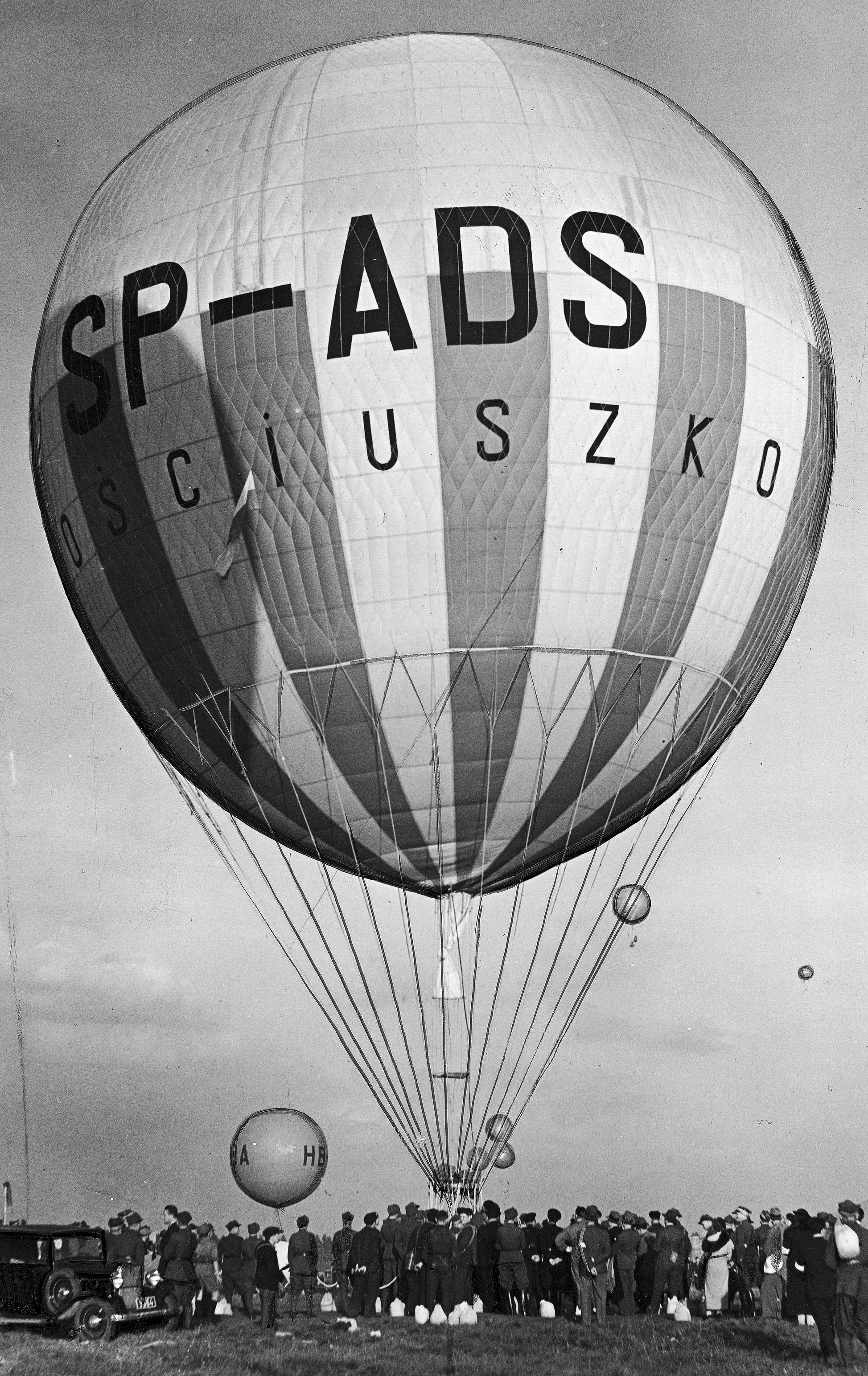 Balon "Kościuszko" pilotowany przez kapitana Franciszka Hynka i porucznik Władysława Pomaskiego w chwili startu.