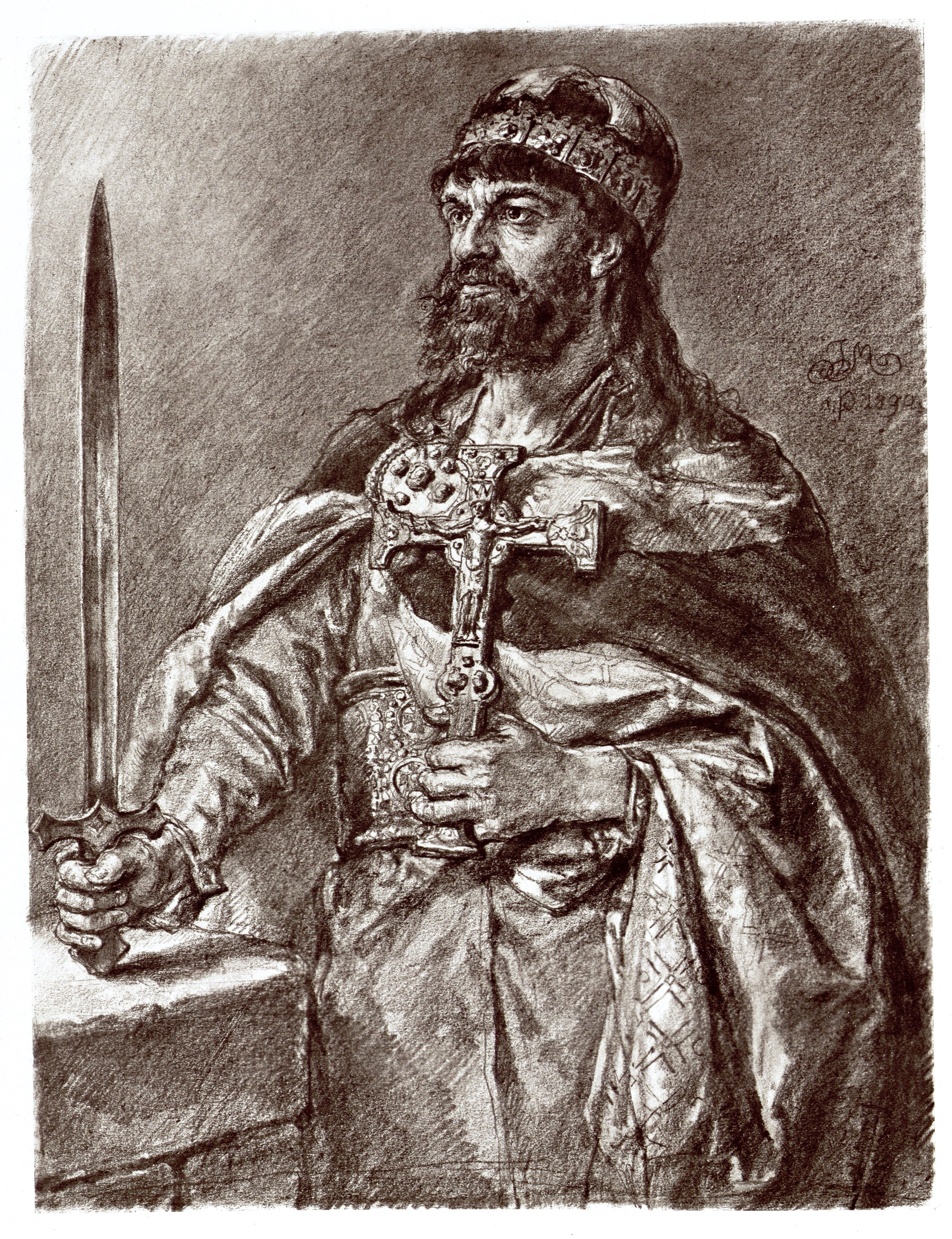Ilustracja z książki "Królowie i książęta: rysunki Jana Matejki", wydanej około 1893 roku w Wiedniu nakładem Maurycego Perlesa. Jest to rysunek ołówkiem z cyklu „Poczet królów i książąt polskich”, który powstał w okresie od lutego 1890 roku do stycznia 1892 roku.