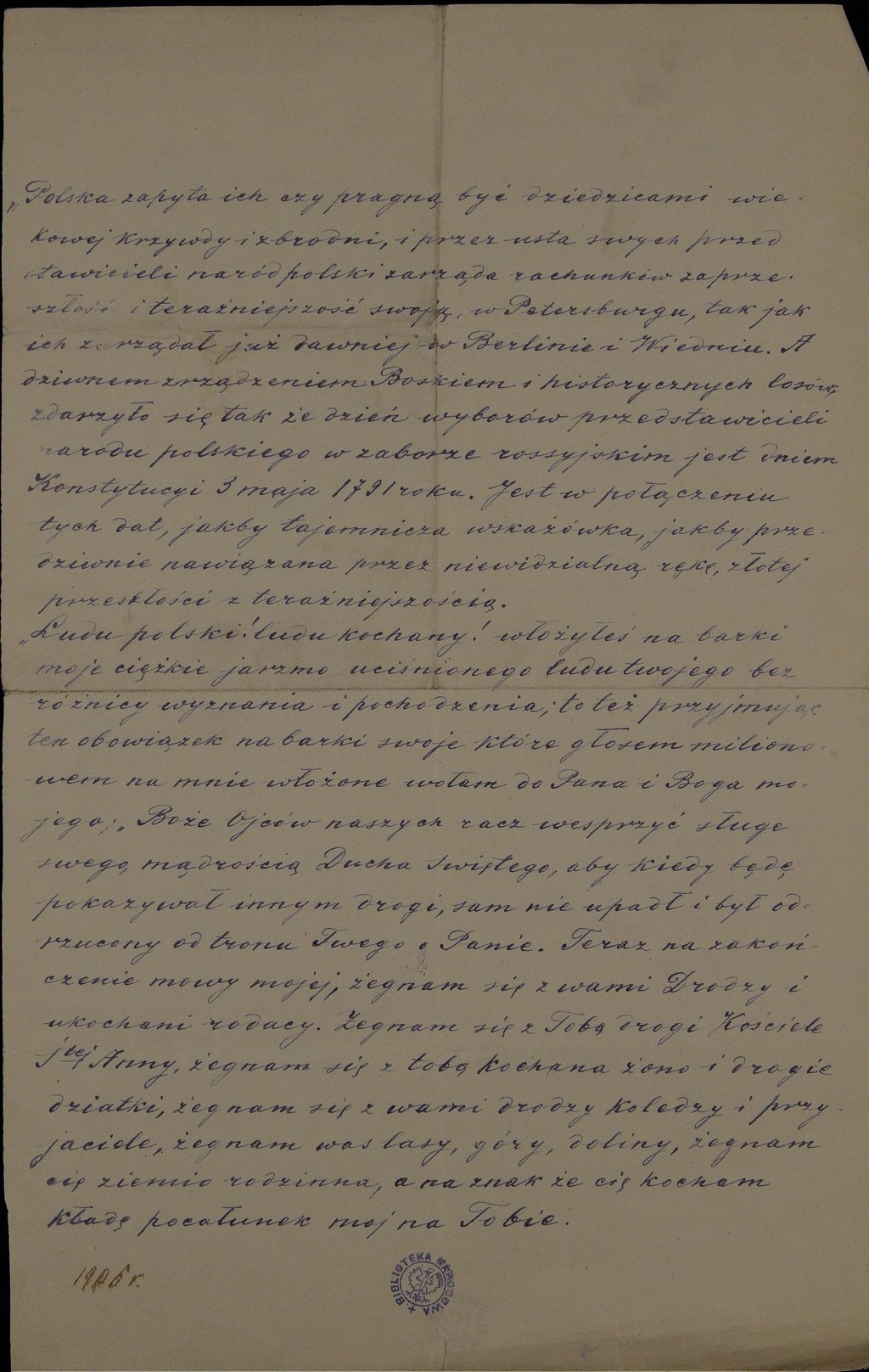 , Mowa pożegnalna Józefa Ostrowskiego cz. II (1906 r.), [w:] Polski słownik biograficzny, t. ,