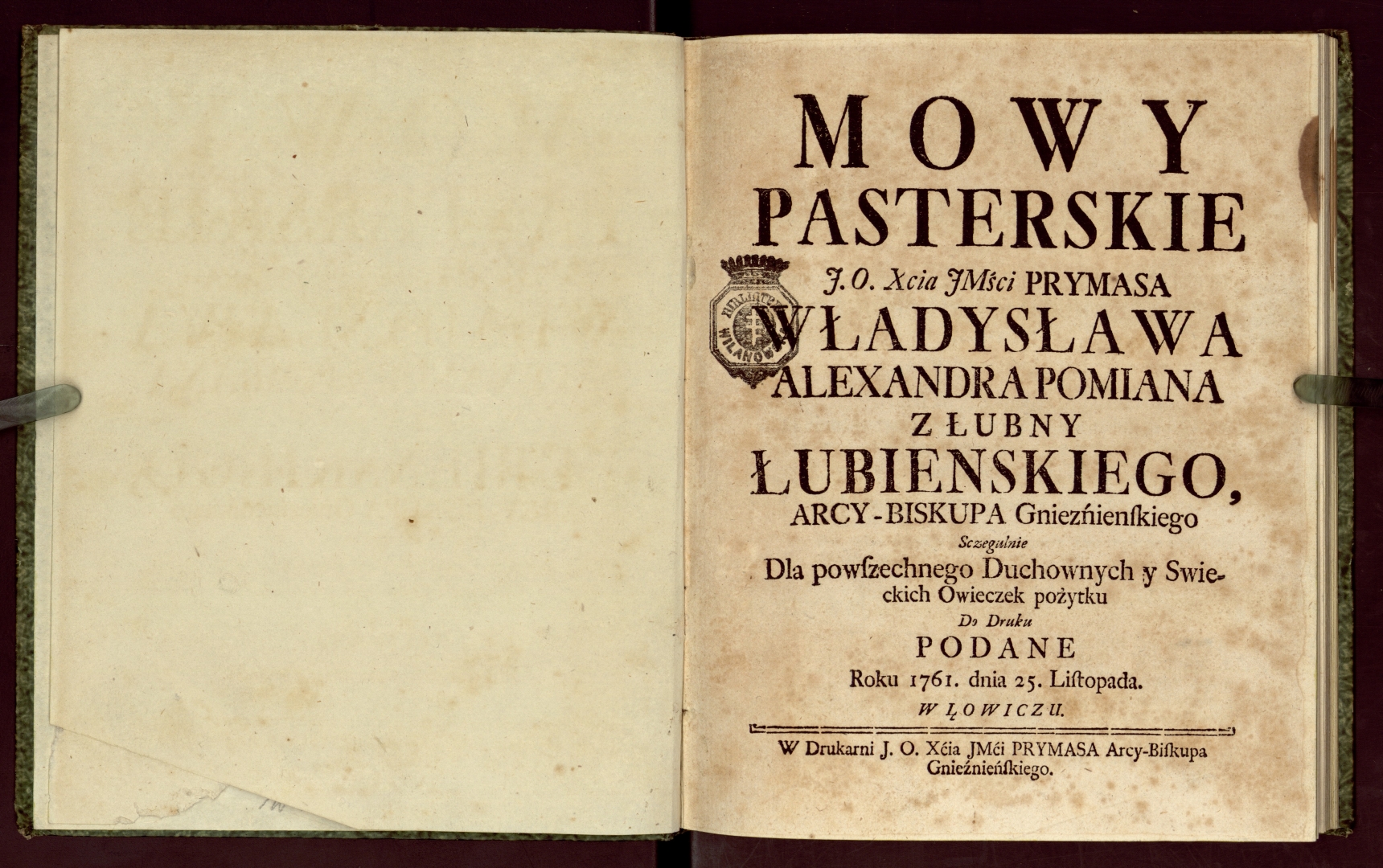 Kazania Władysława Aleksandra Łubińskiego z 1761 roku wydrukowane w Drukarni Prymasowskiej w Łowiczu.